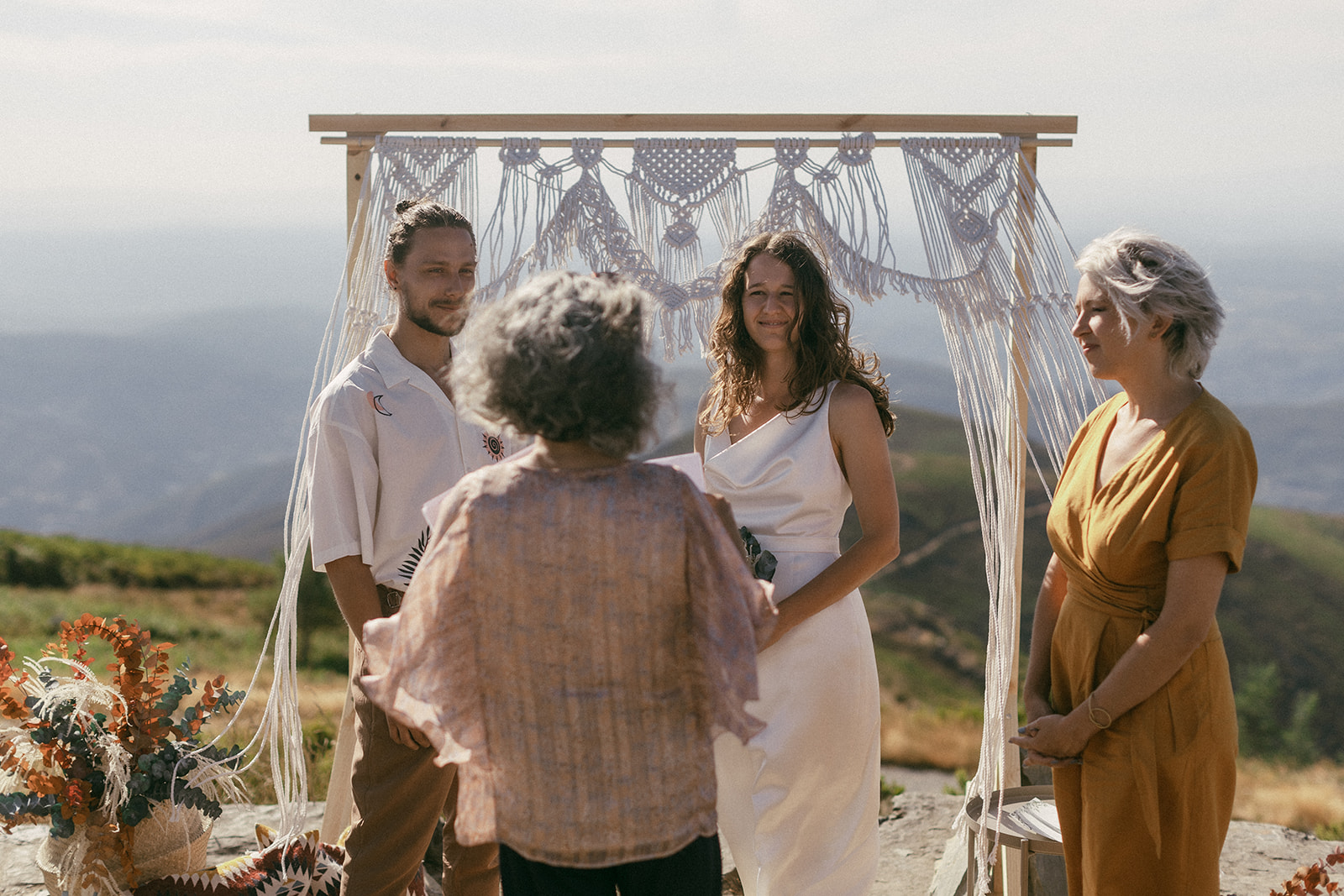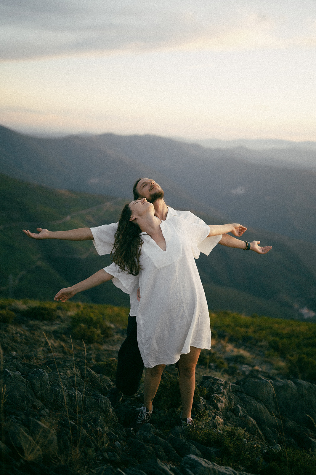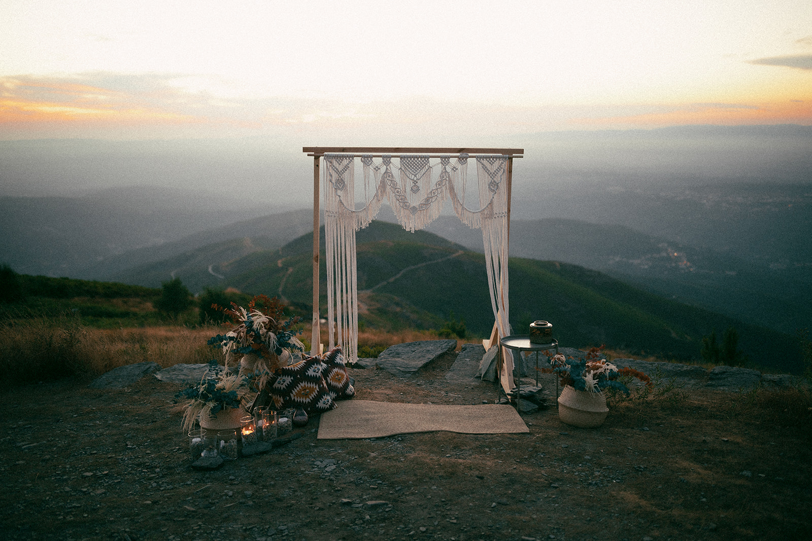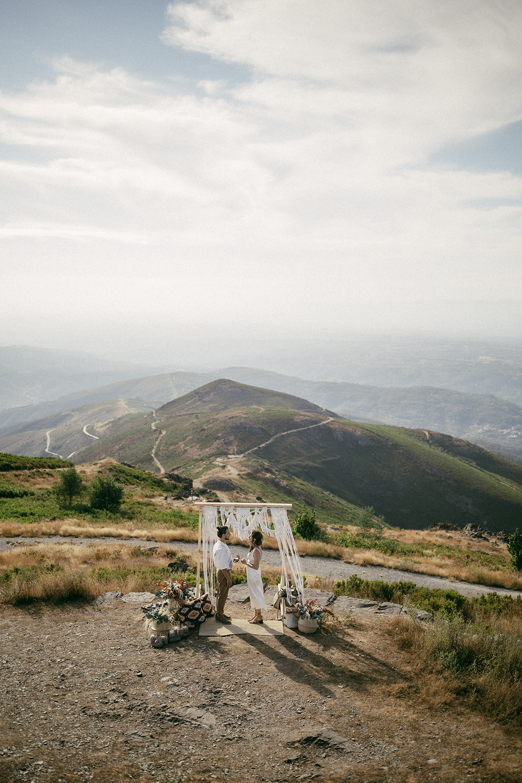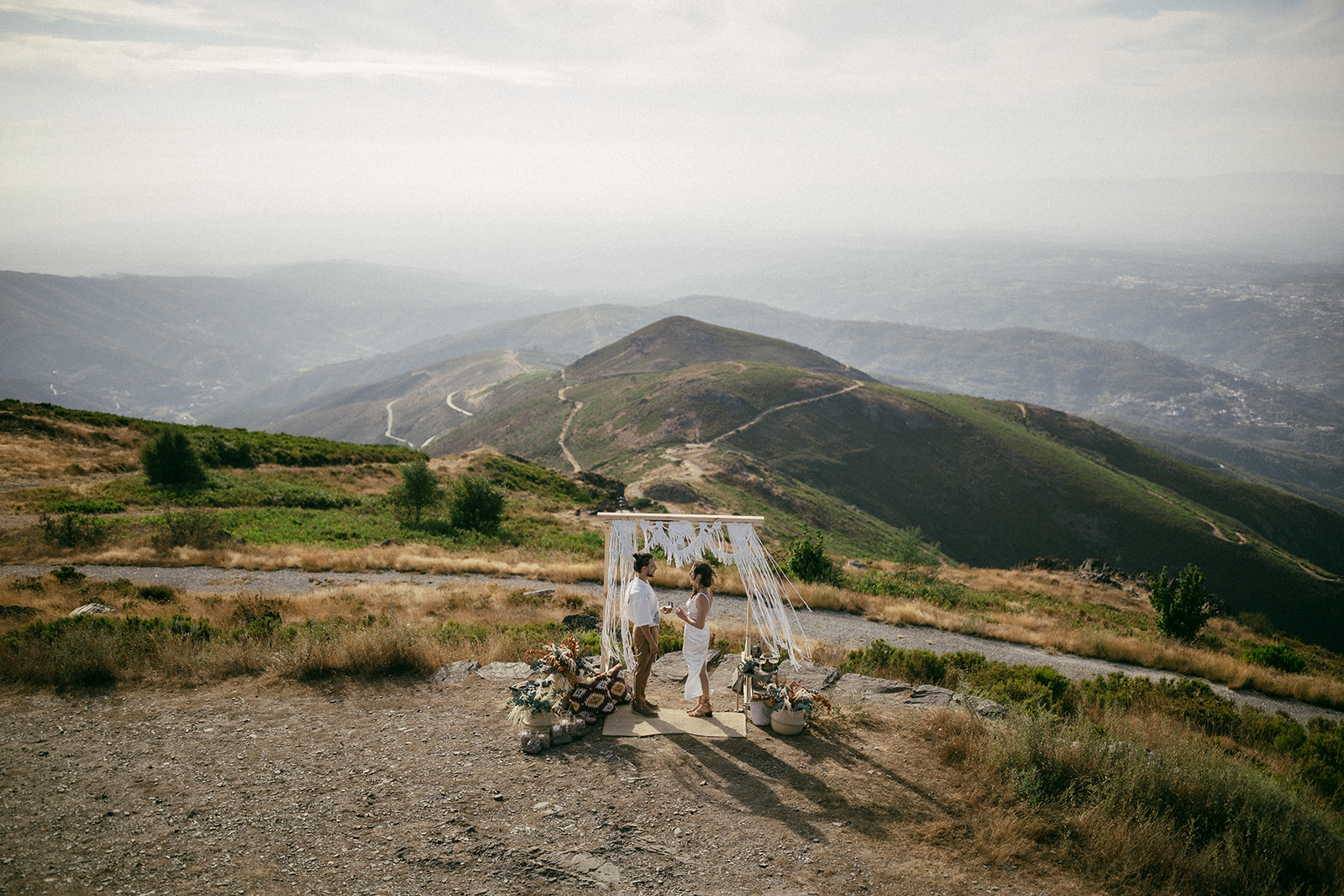 When they reached the mountains of Central Portugal, they assembled it together on a breathtaking peak, surrounded by vast landscapes and silence. Against this simple yet deeply personal setting, they exchanged their vows and became husband and wife.
