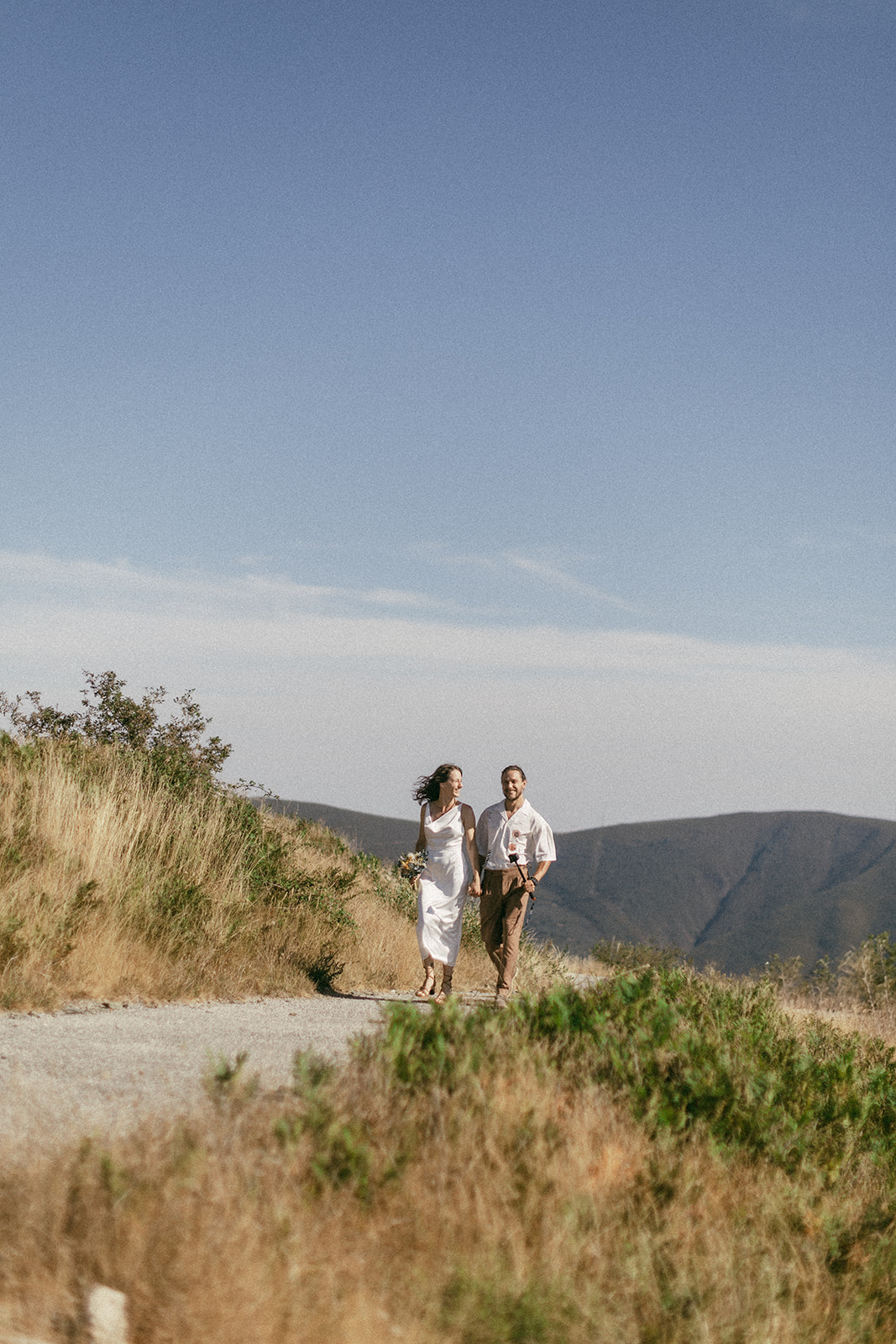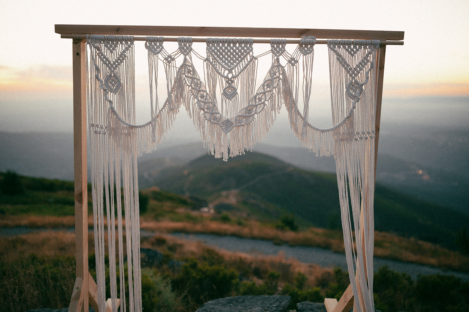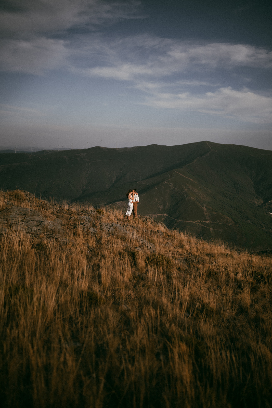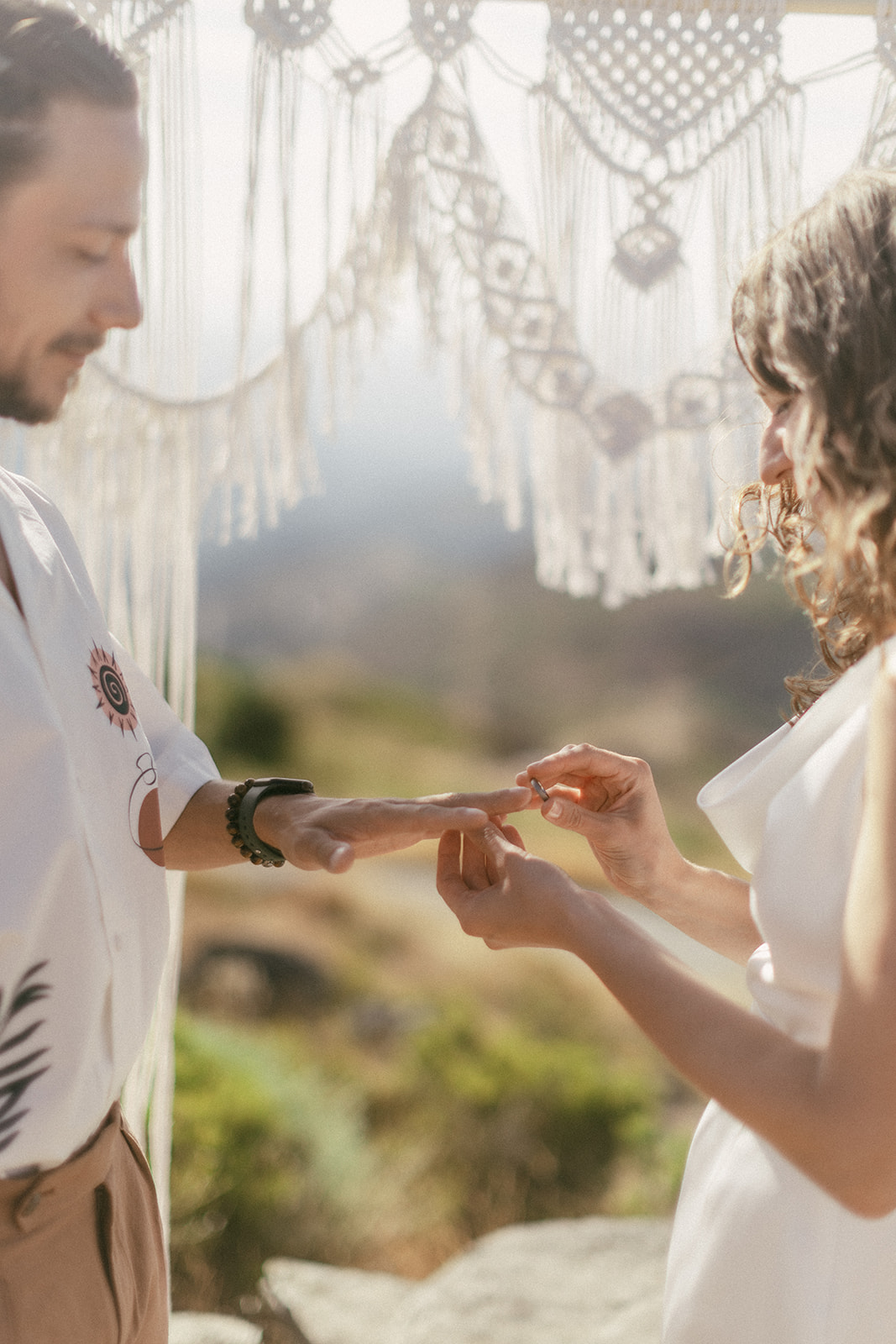 When they reached the mountains of Central Portugal, they assembled it together on a breathtaking peak, surrounded by vast landscapes and silence. Against this simple yet deeply personal setting, they exchanged their vows and became husband and wife.