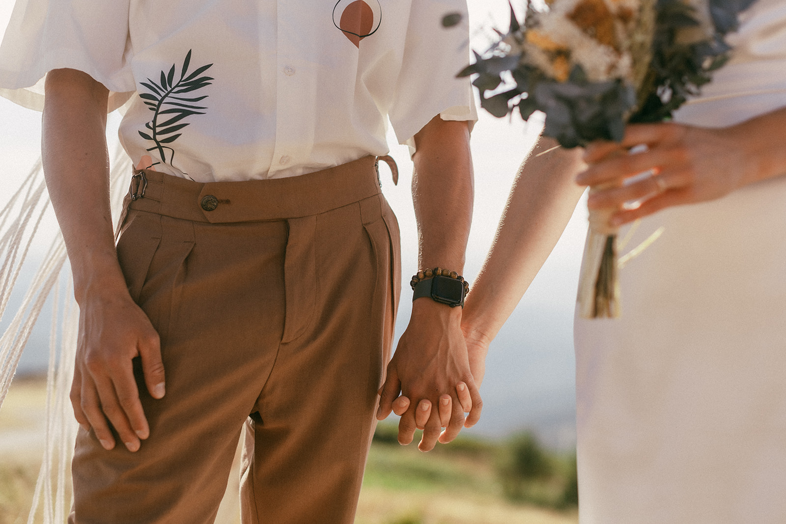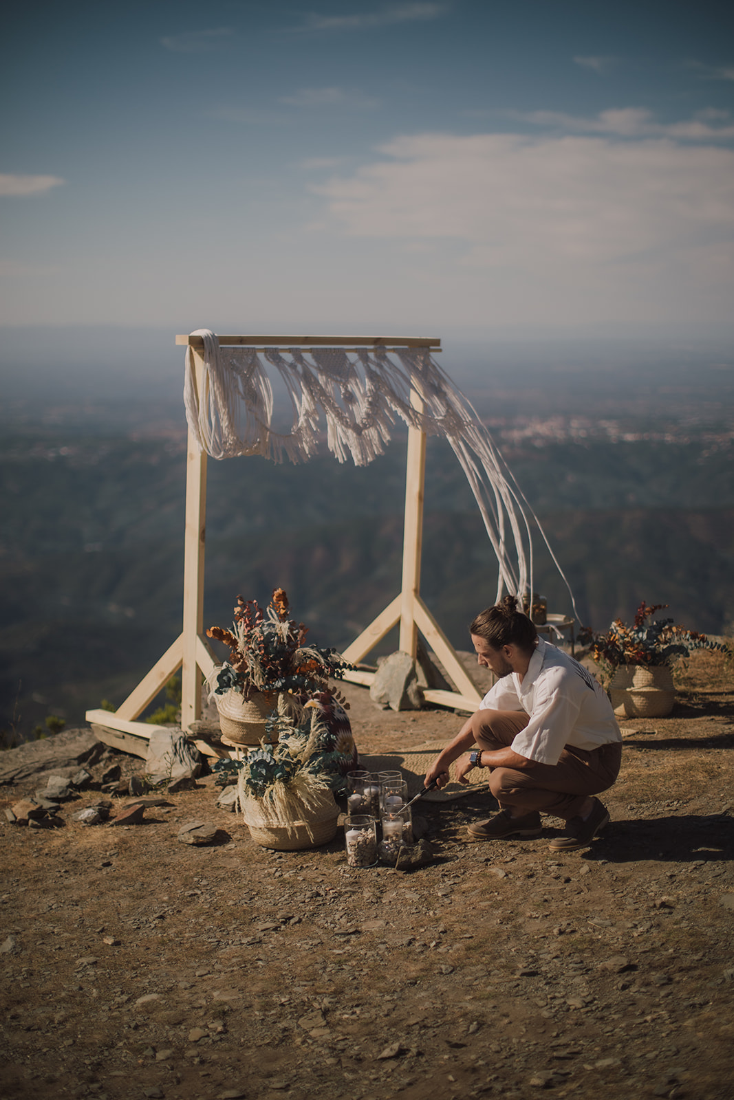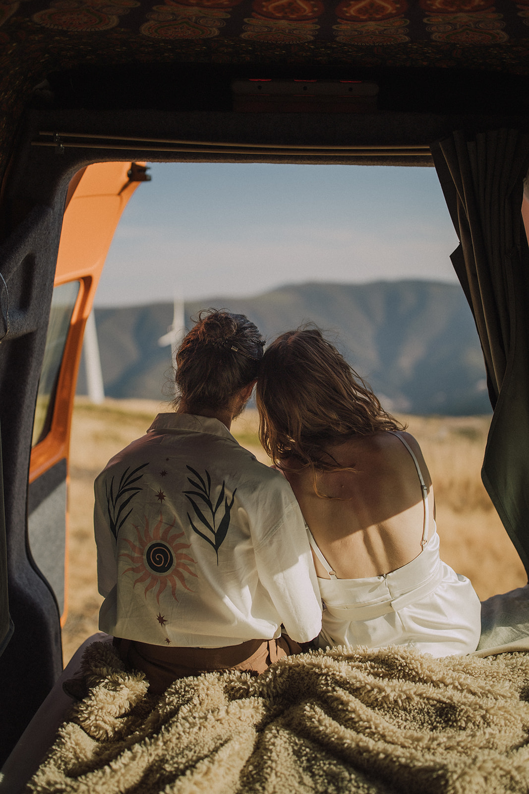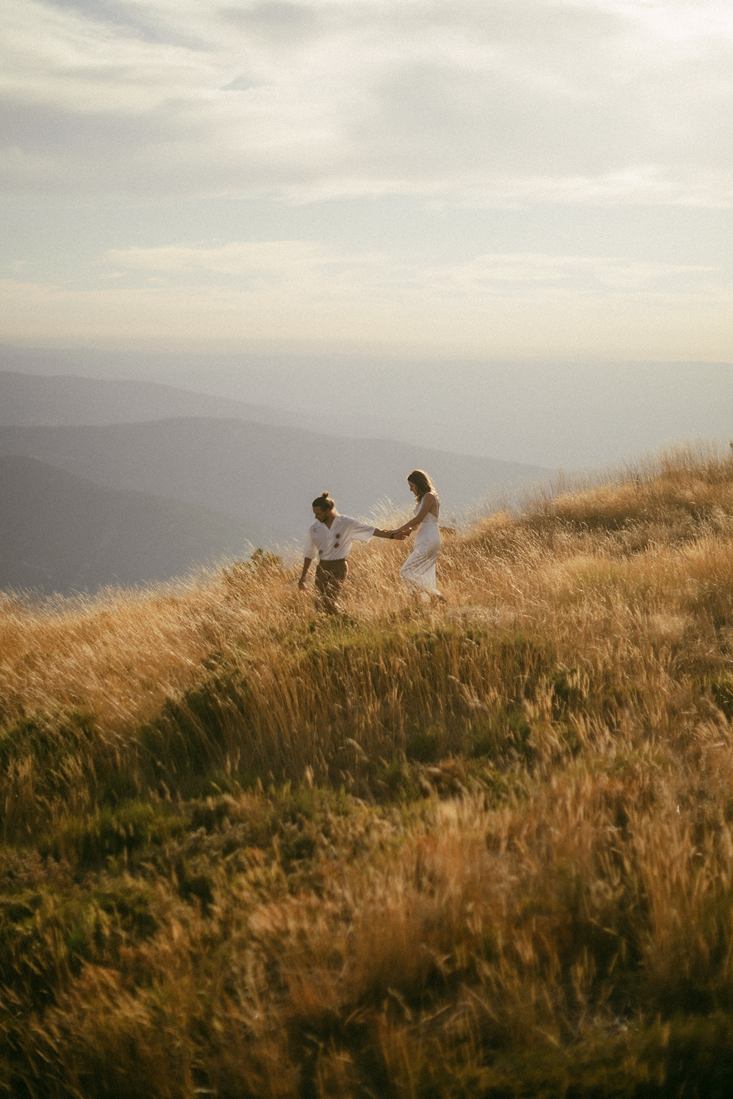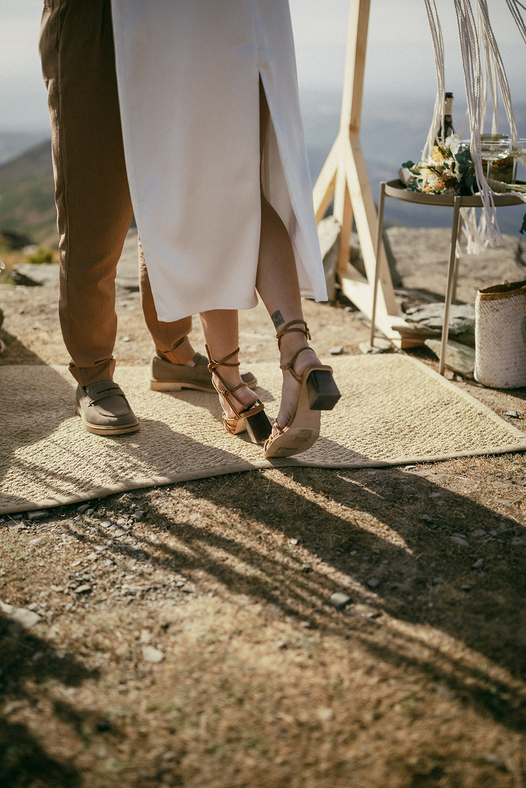 When they reached the mountains of Central Portugal, they assembled it together on a breathtaking peak, surrounded by vast landscapes and silence. Against this simple yet deeply personal setting, they exchanged their vows and became husband and wife.