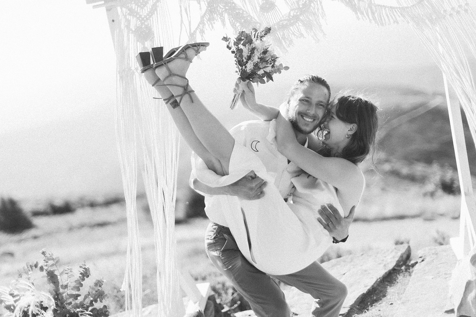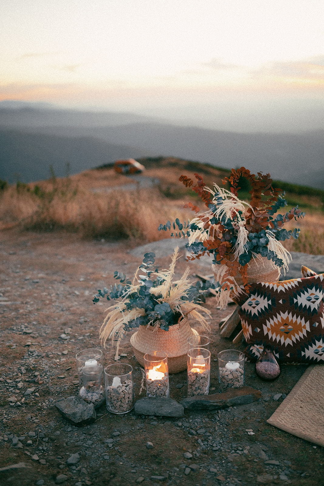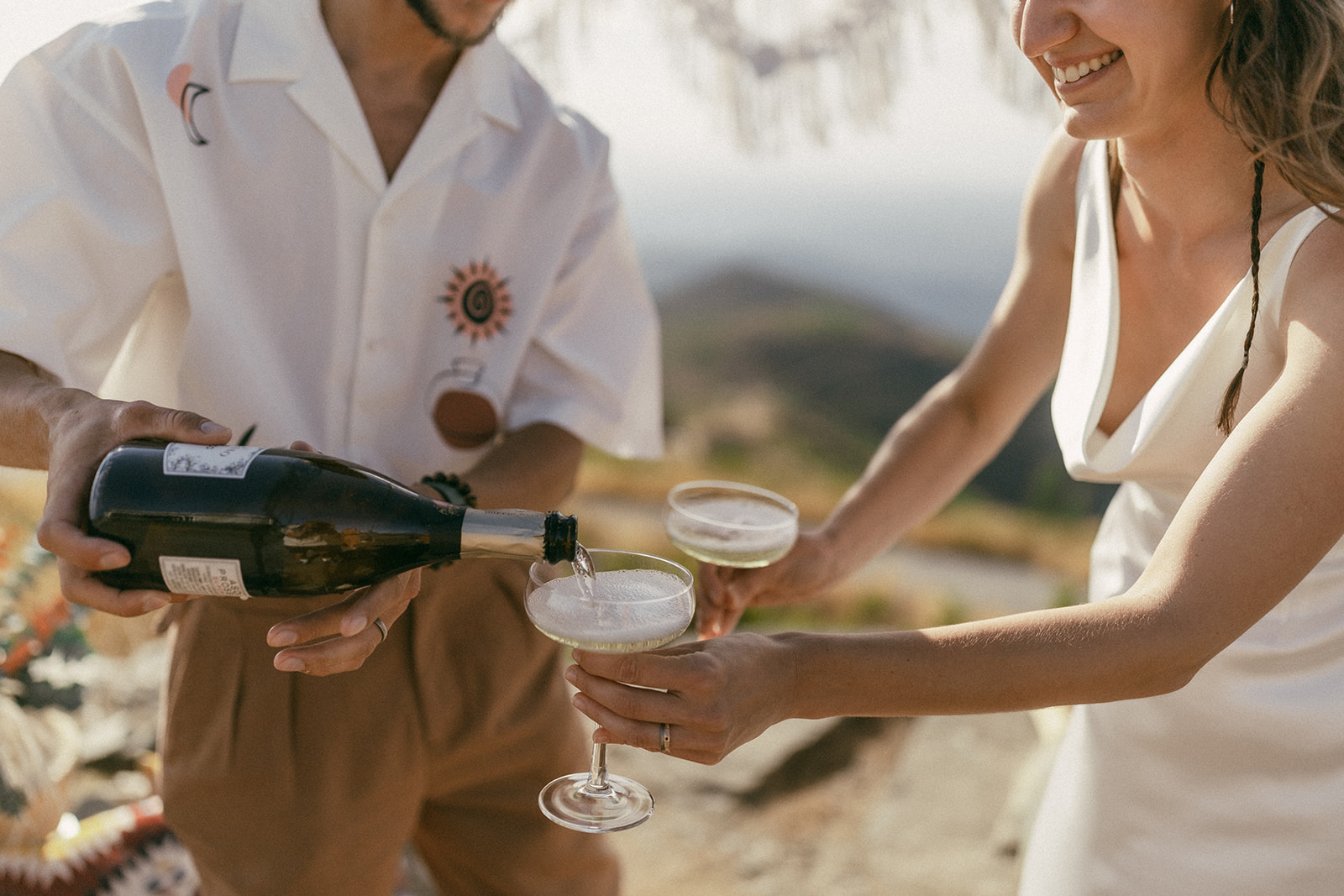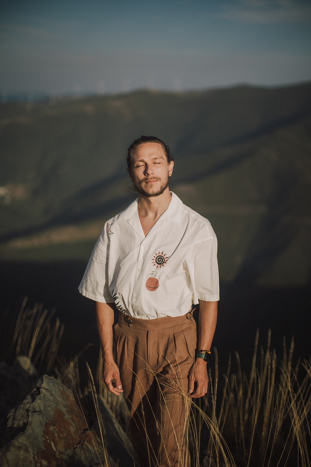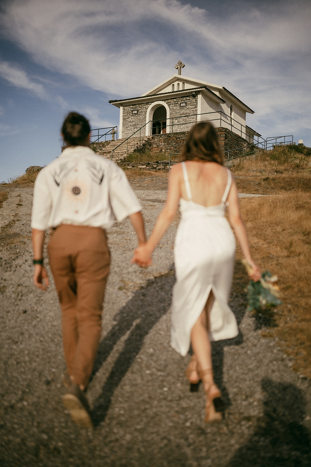 When they reached the mountains of Central Portugal, they assembled it together on a breathtaking peak, surrounded by vast landscapes and silence. Against this simple yet deeply personal setting, they exchanged their vows and became husband and wife.