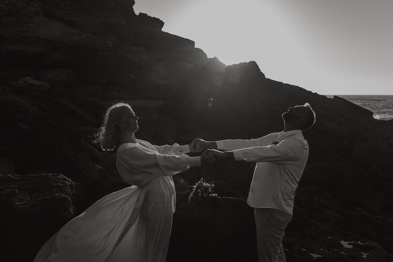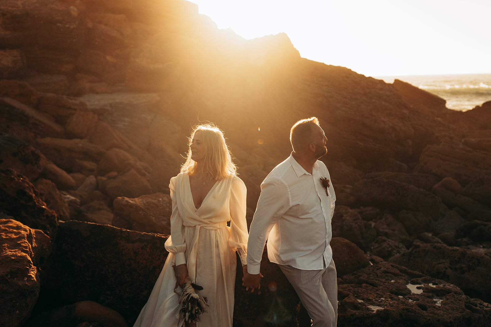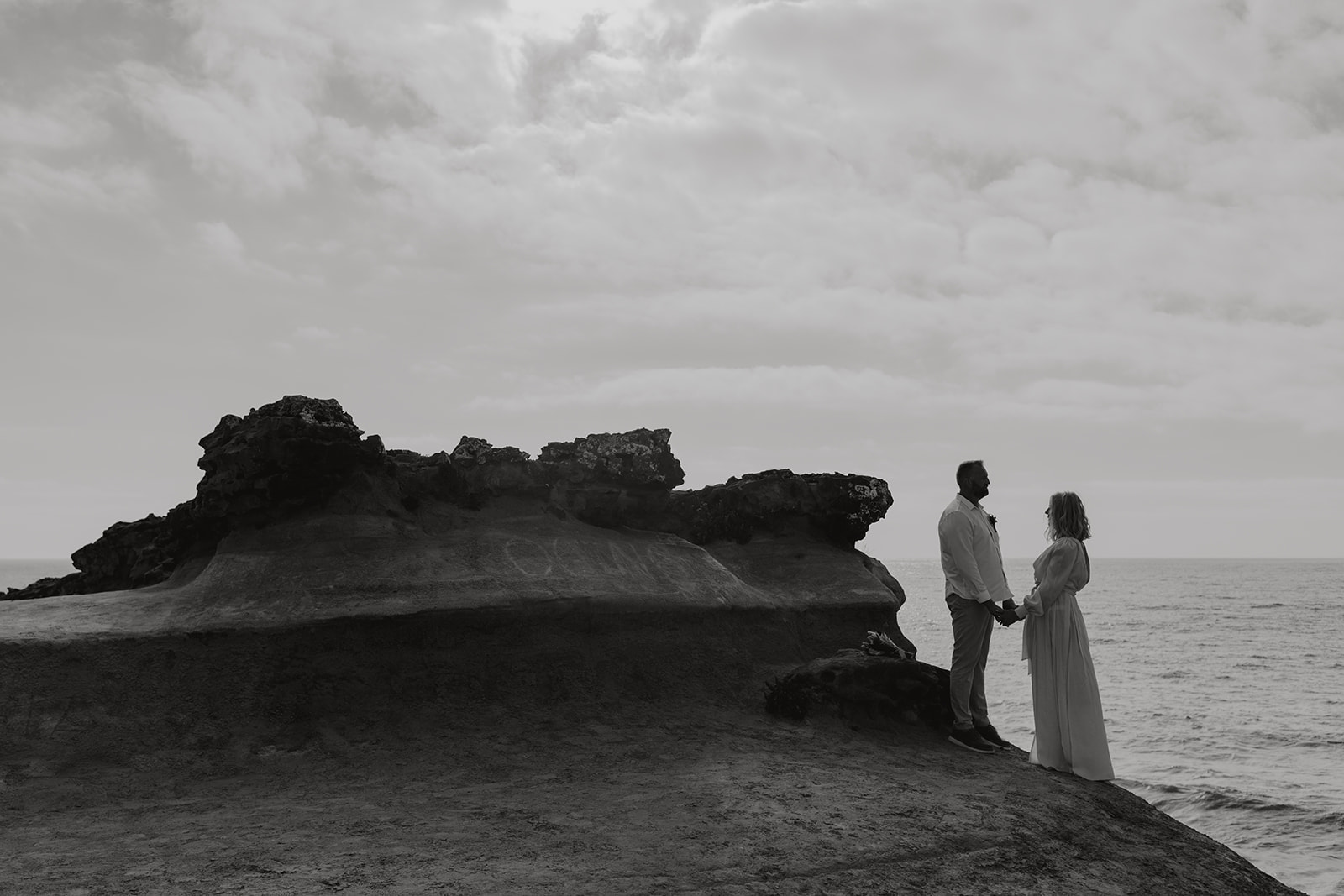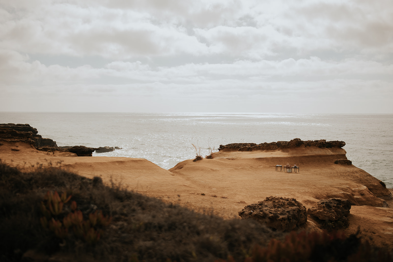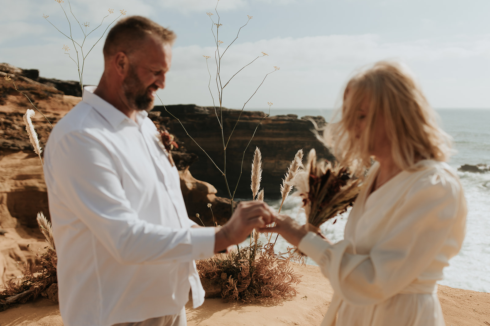 An intimate cliffside ceremony embraced by ocean and light