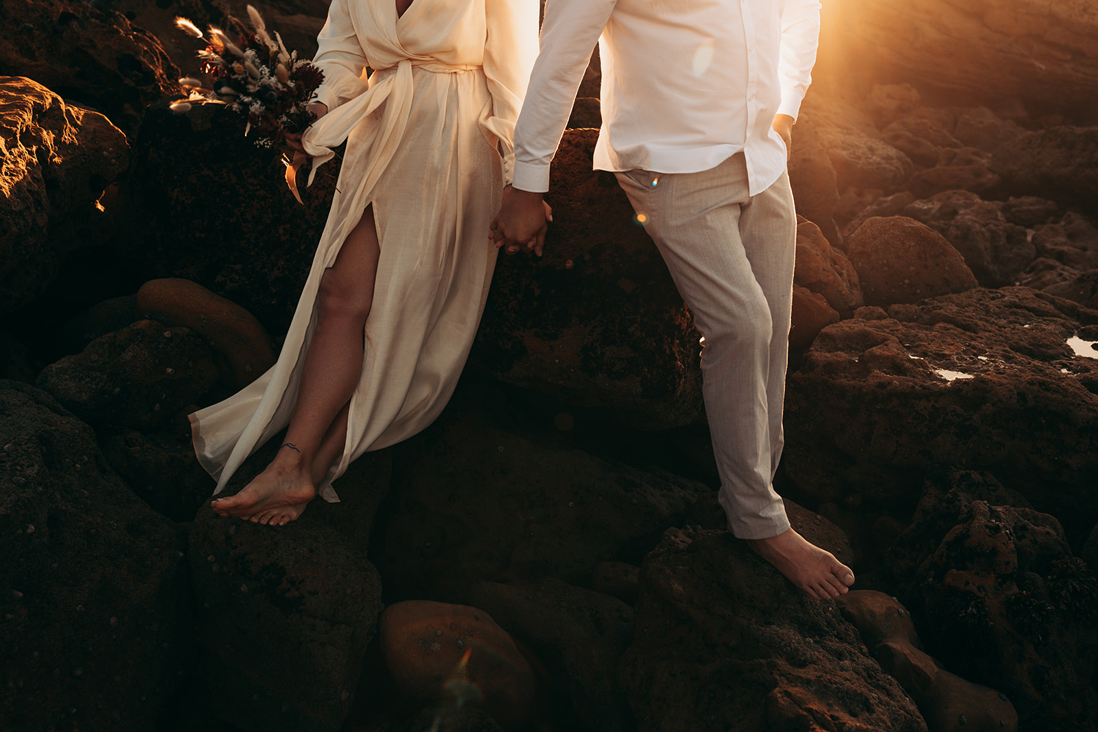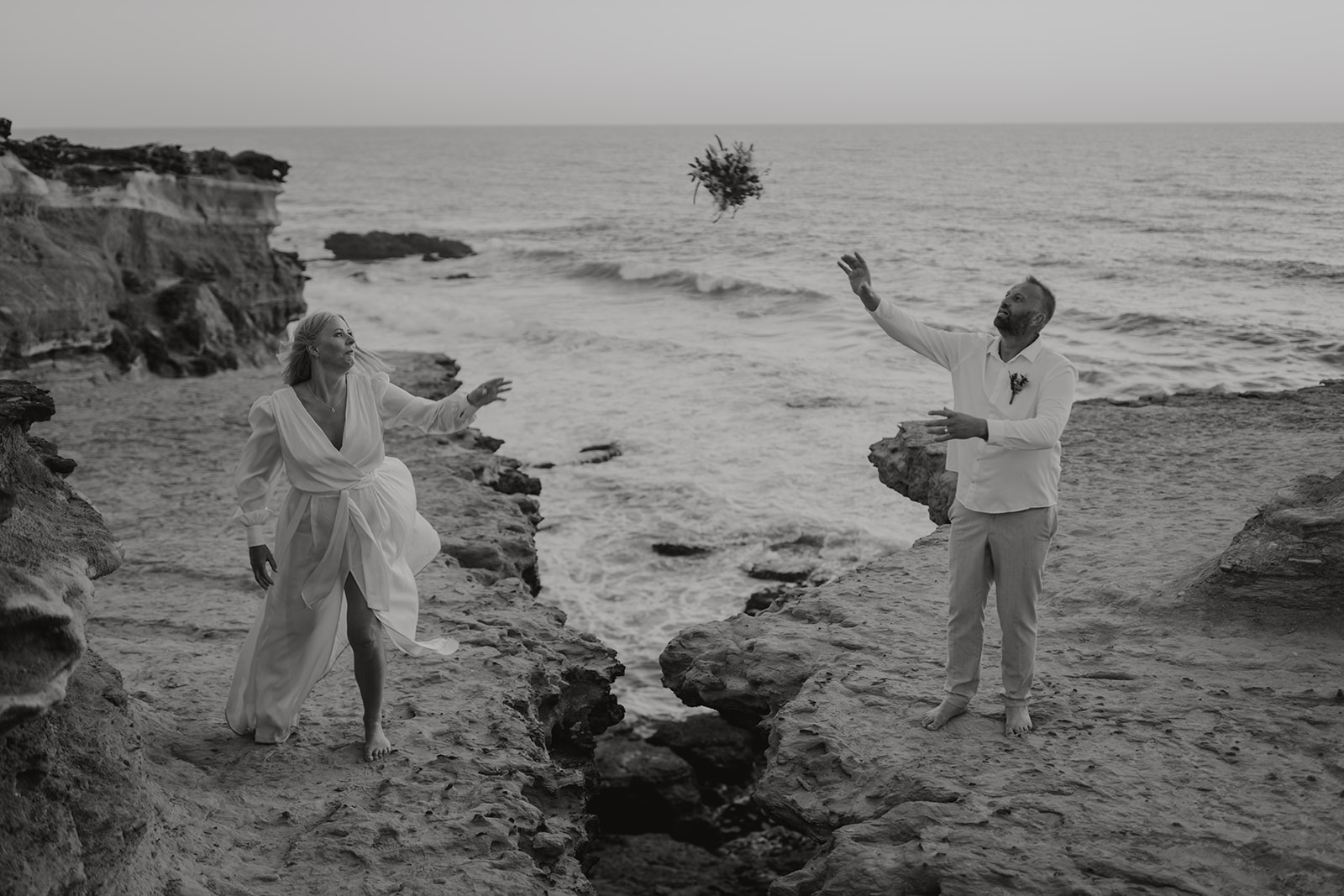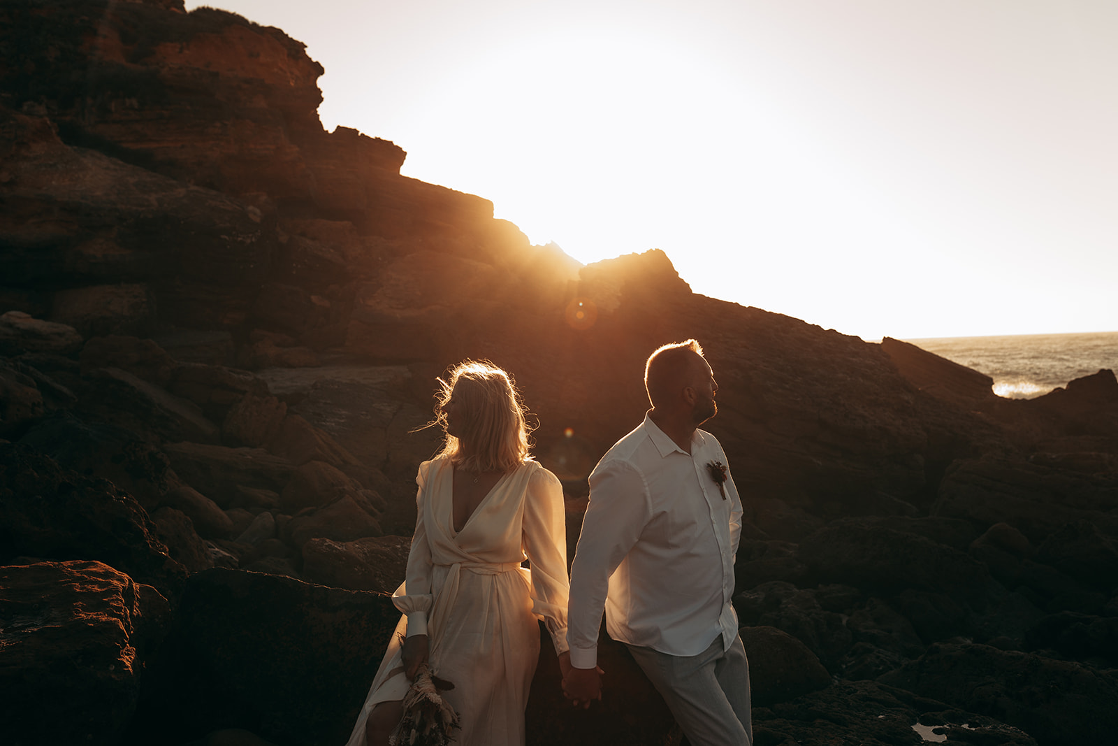 Aušra and Vaidas traveled from Lithuania to exchange their vows on the golden cliffs of Ericeira, where the Atlantic waves crash dramatically against the rocks below. Their civil ceremony was intimate and windswept—just the two of them, surrounded by raw nature and endless ocean views.