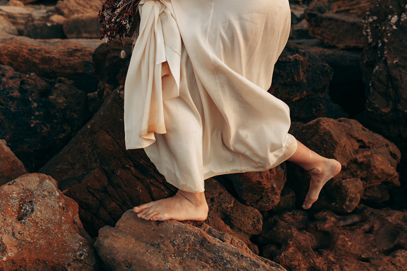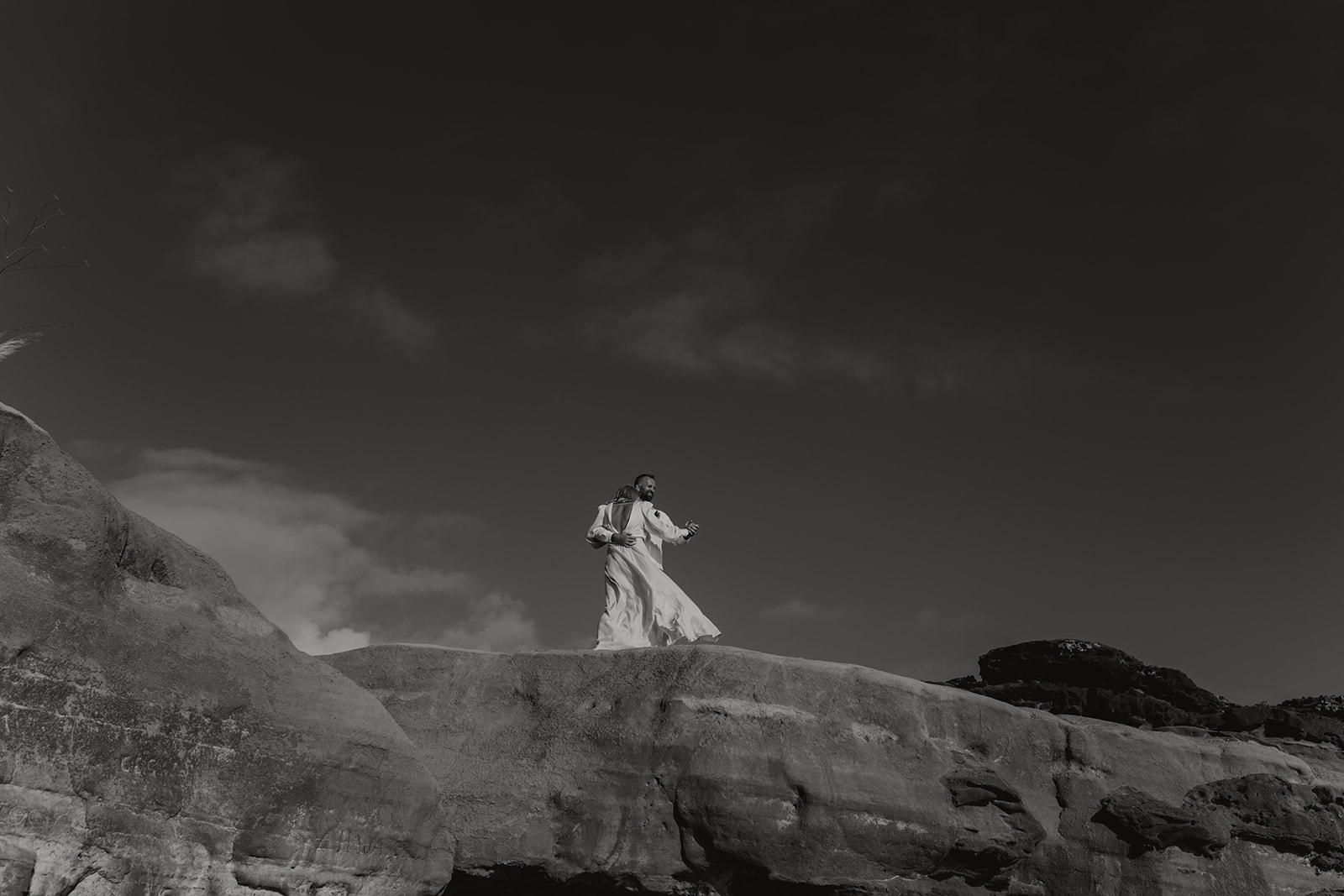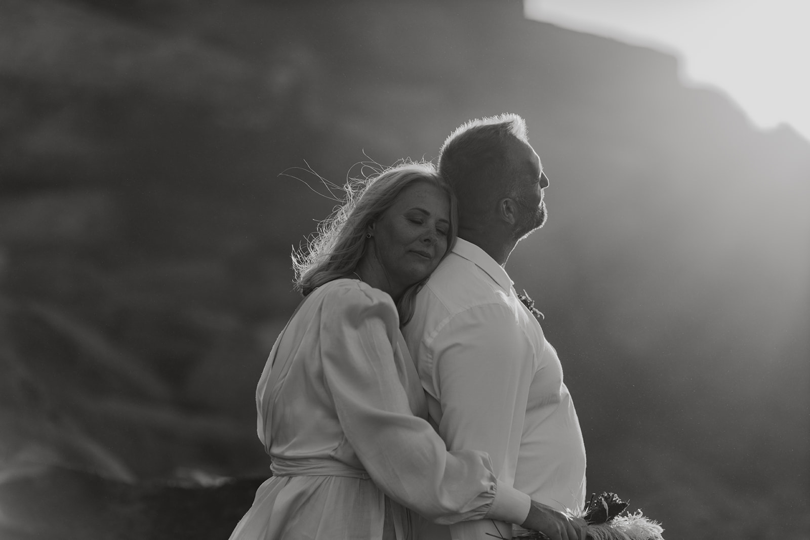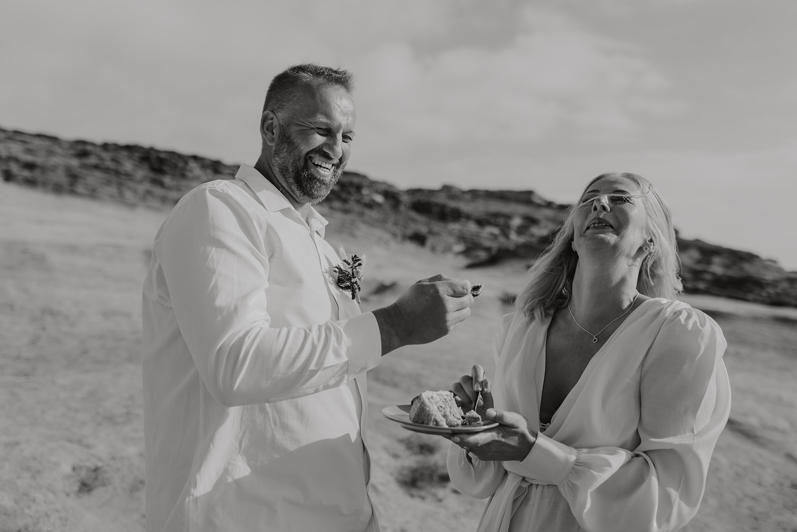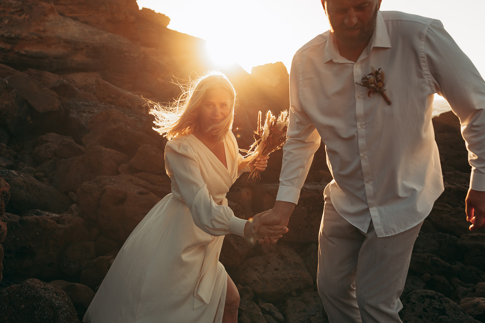 After saying “I do,” they celebrated with champagne and cake—just enough to share with the photographer and wedding planner who witnessed their moment. As the sun slowly dipped into the horizon, the cliffs turned warm and golden, creating a backdrop so breathtaking that every photograph felt frame-worthy.