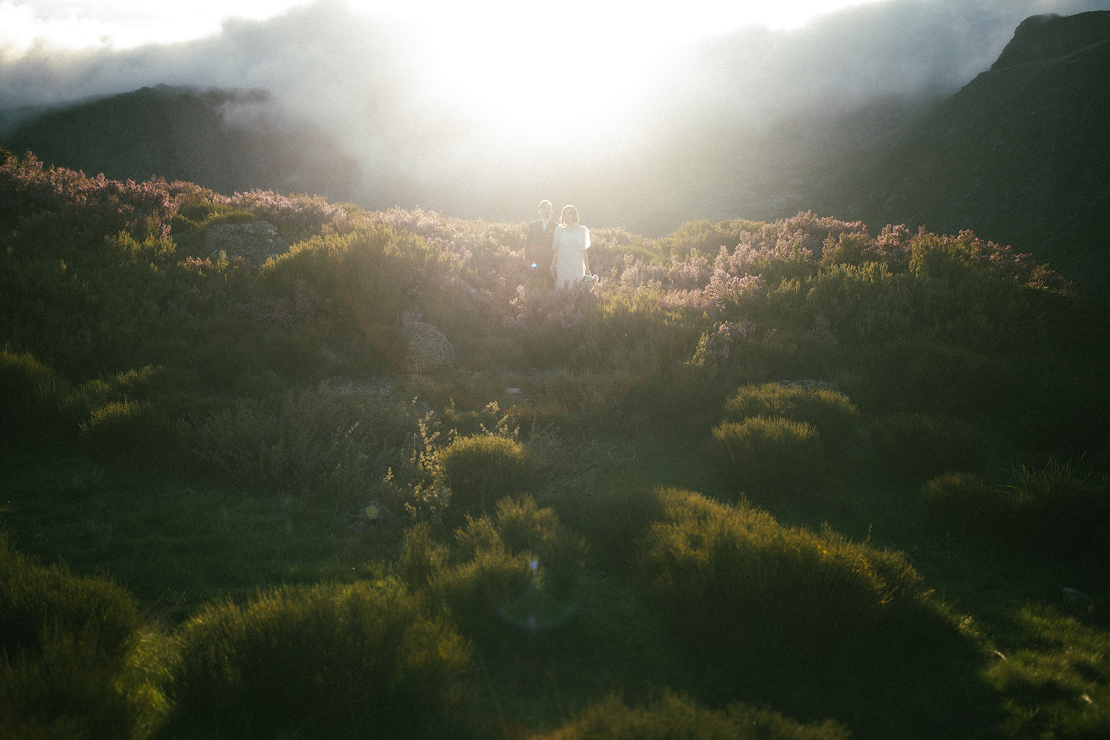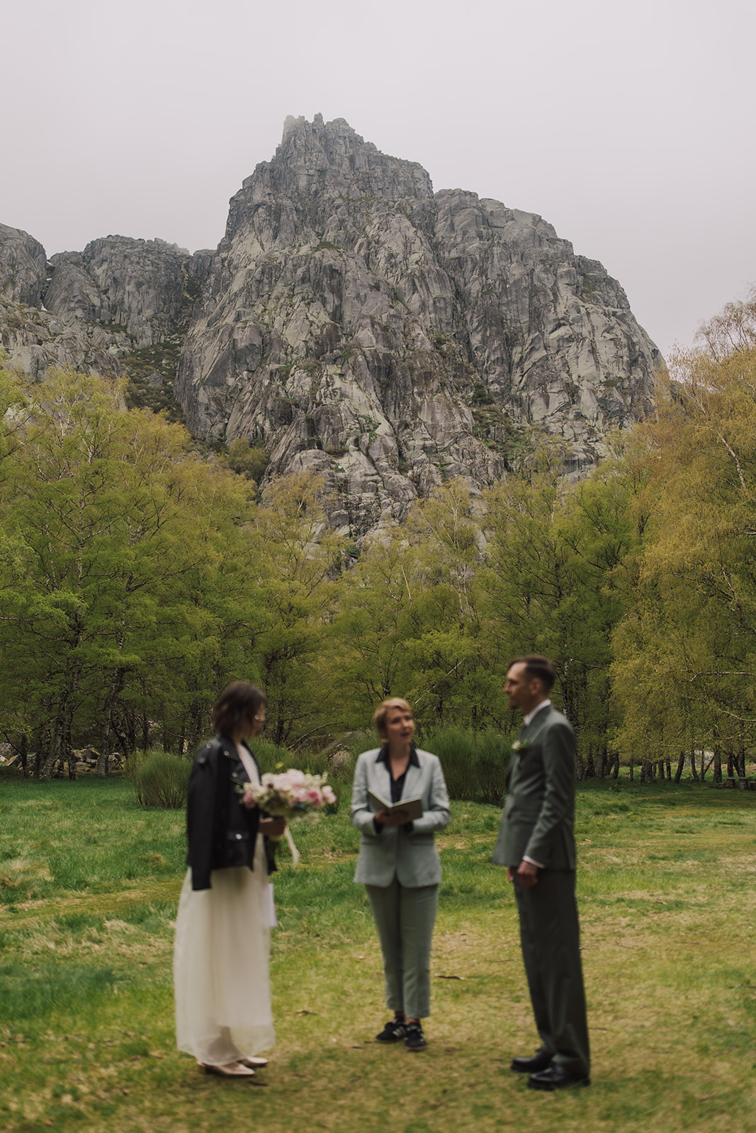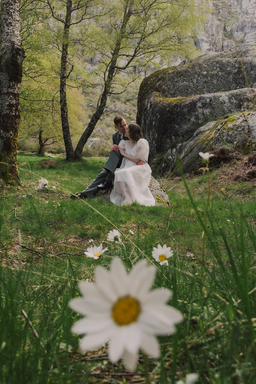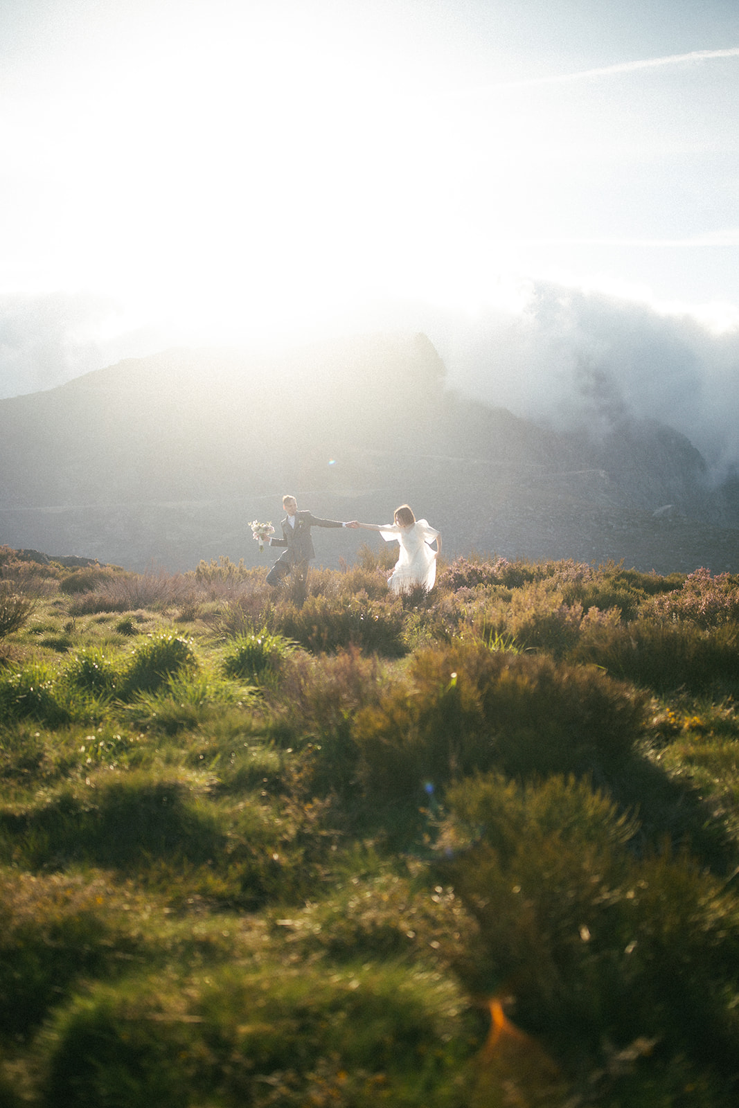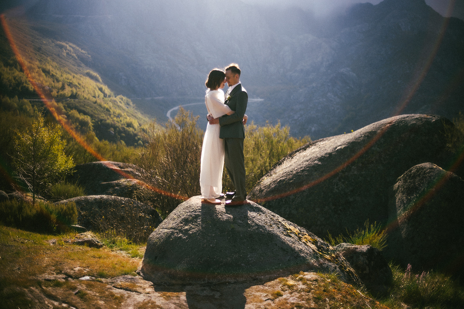 And so we found ourselves in Serra da Estrela, surrounded by gentle mountain silhouettes washed in golden light. There, among grey Portuguese rocks and blooming spring fields, they exchanged personal vows — quietly, sincerely, entirely as themselves.