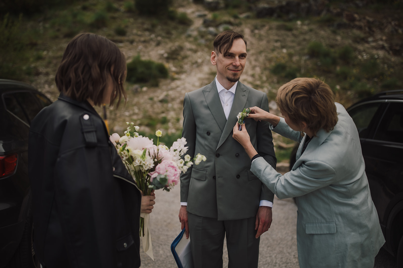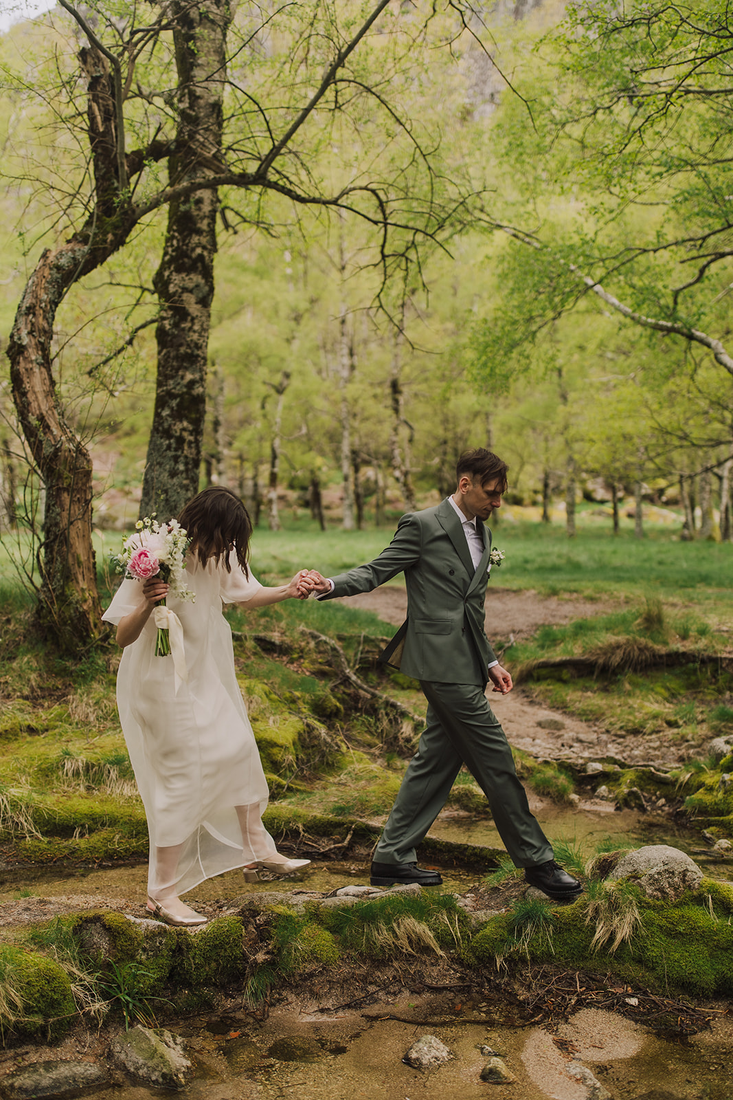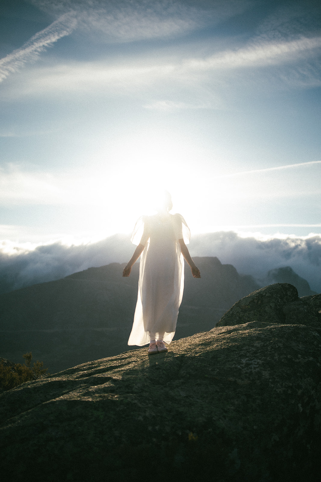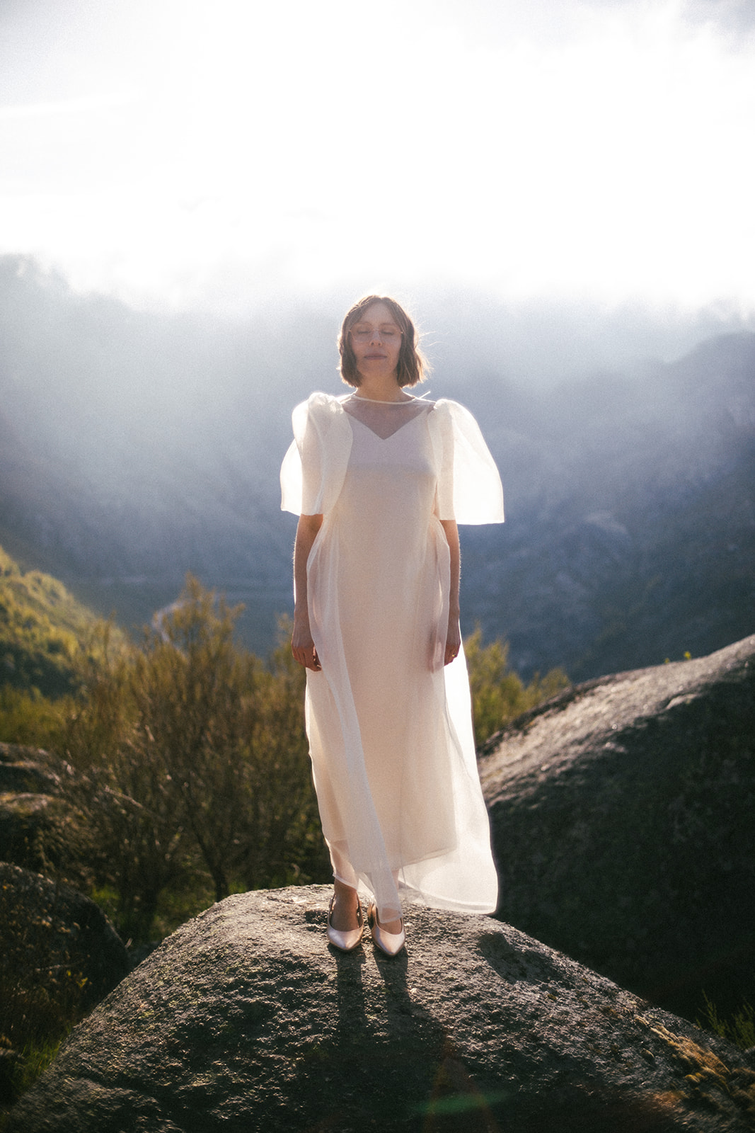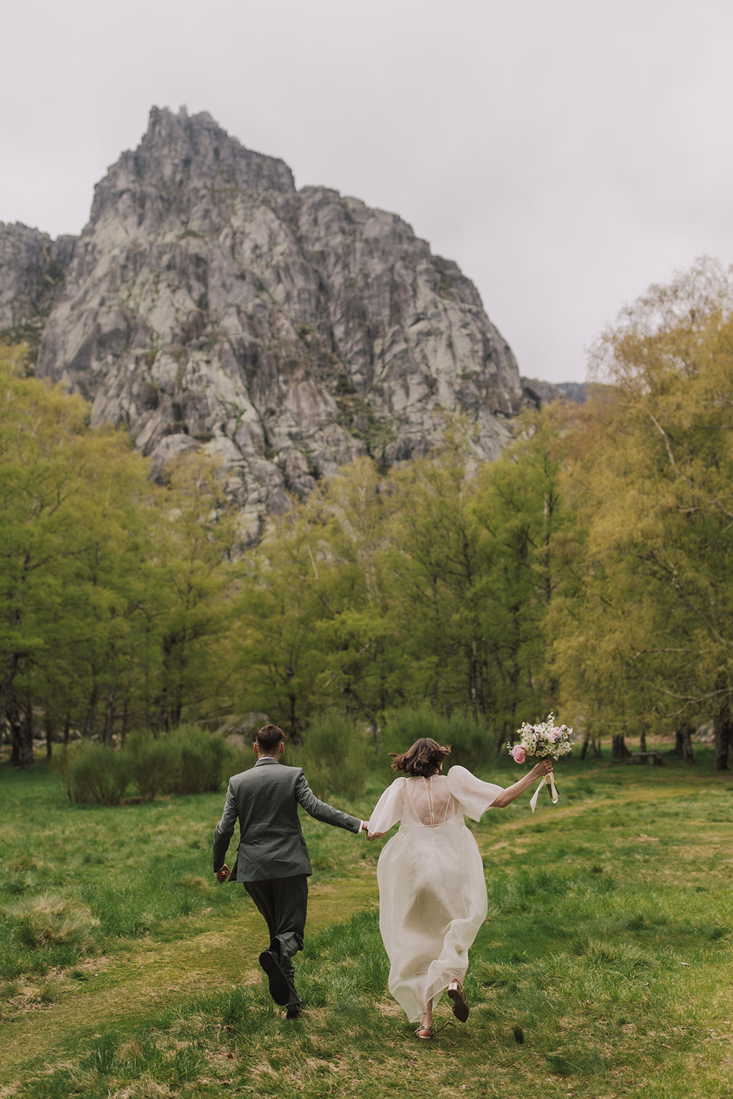 And so we found ourselves in Serra da Estrela, surrounded by gentle mountain silhouettes washed in golden light. There, among grey Portuguese rocks and blooming spring fields, they exchanged personal vows — quietly, sincerely, entirely as themselves.