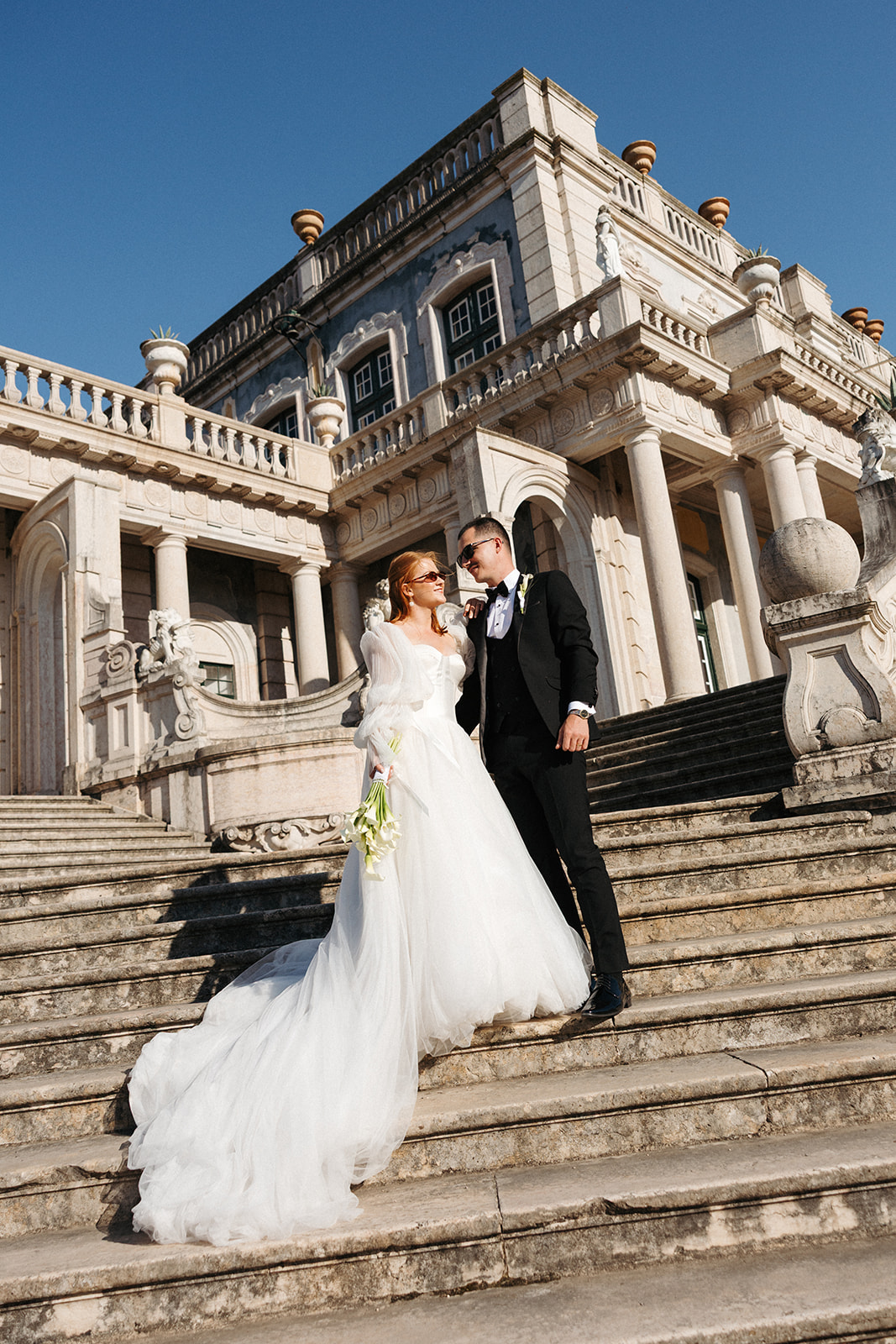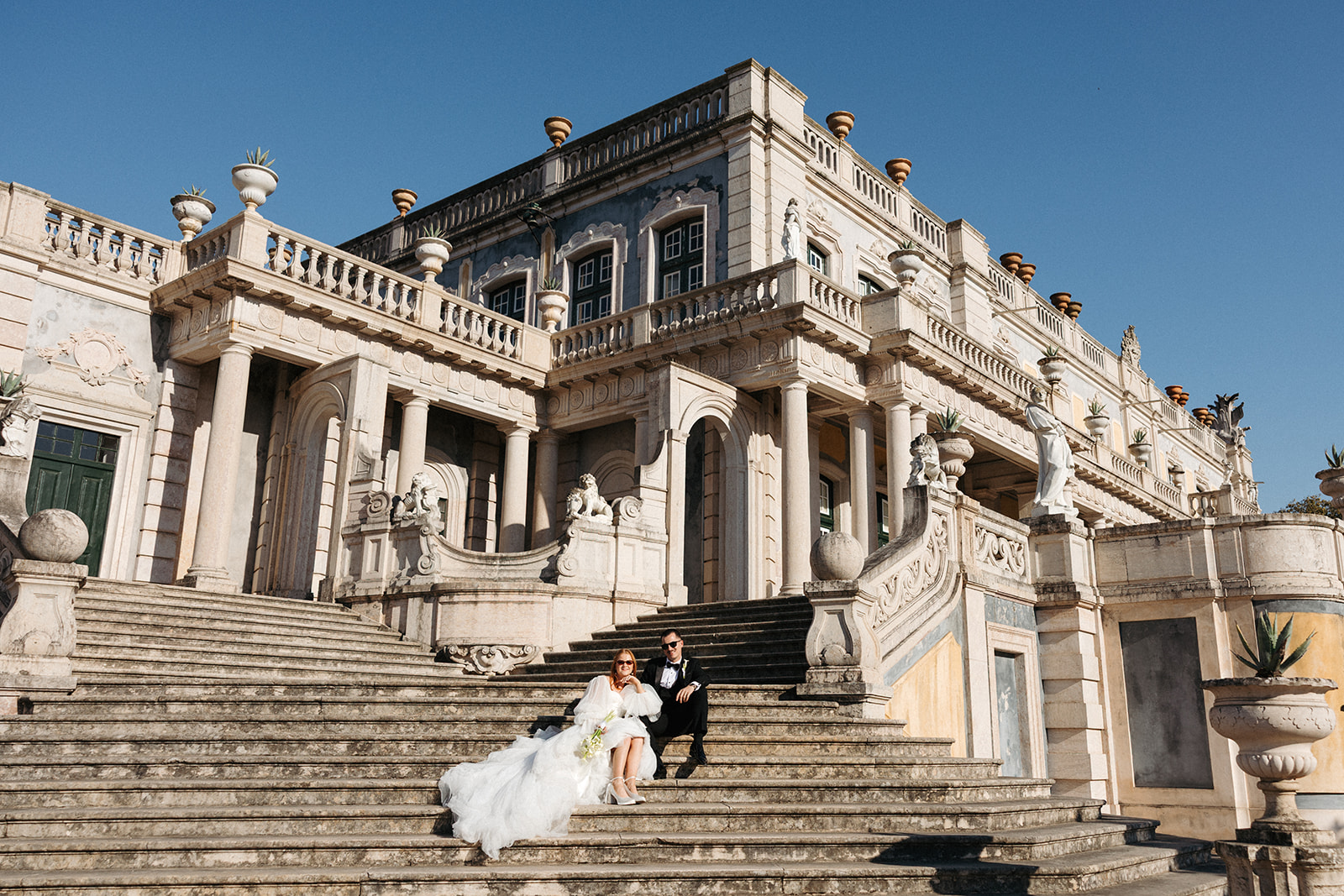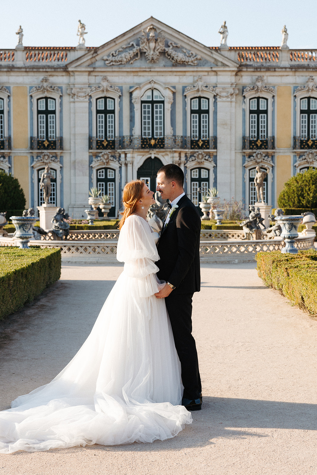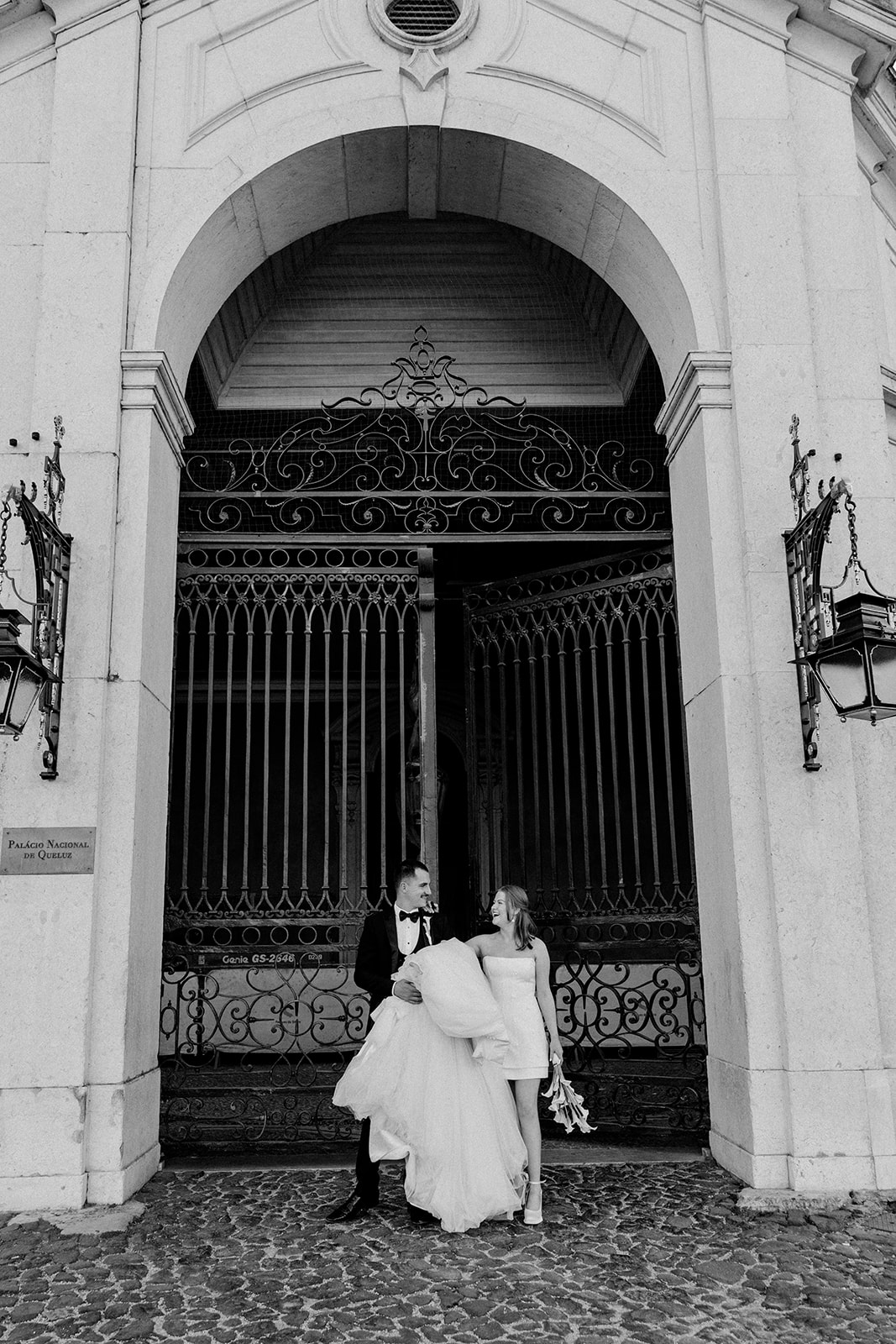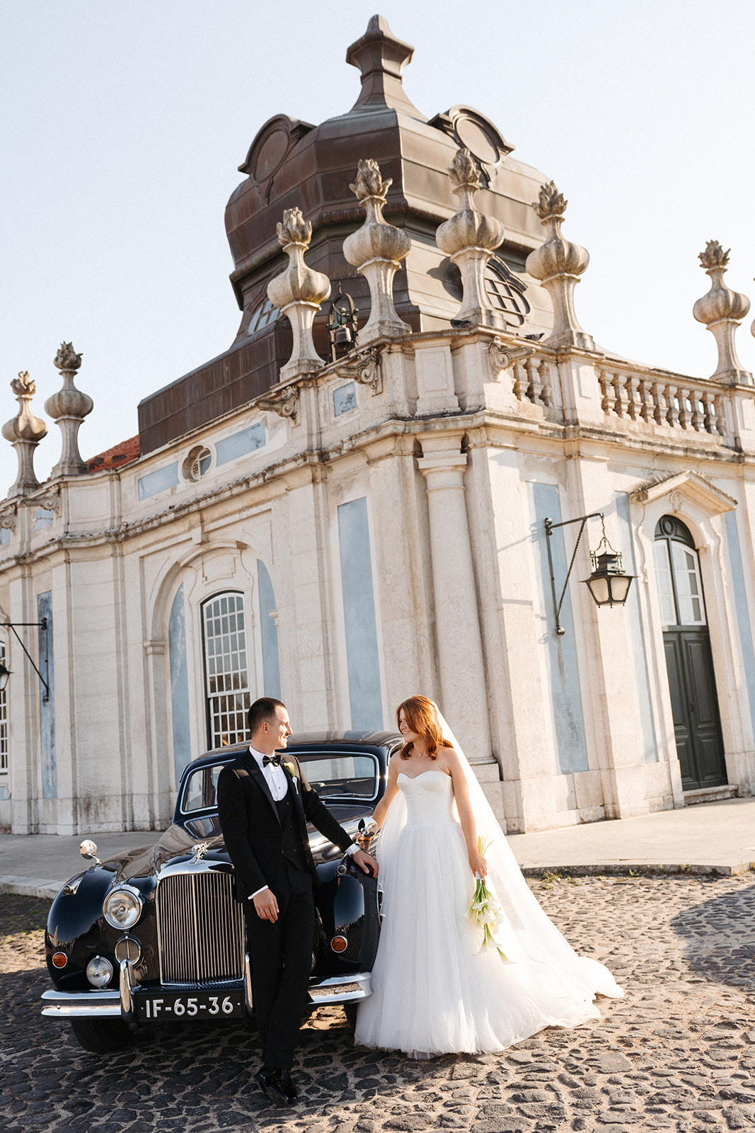 The romance reached its peak as a vintage car whisked them away to the Palácio de Queluz. Against the regal backdrop of the palace, they shared an intimate reading of their vows. Afterward, the royal gardens became the stage for an extensive photoshoot. In her stunning gown, Michaela looked every bit a princess from the palace’s golden era, perfectly embodying the royal heritage of the grounds.
