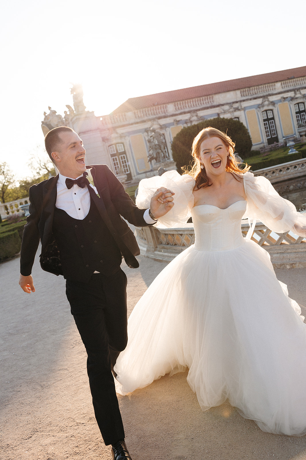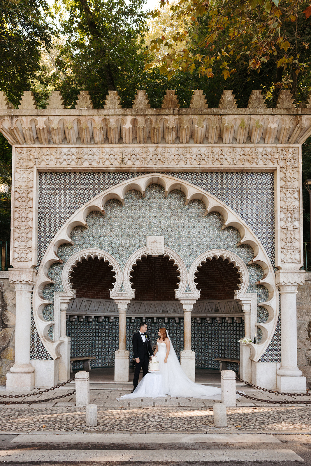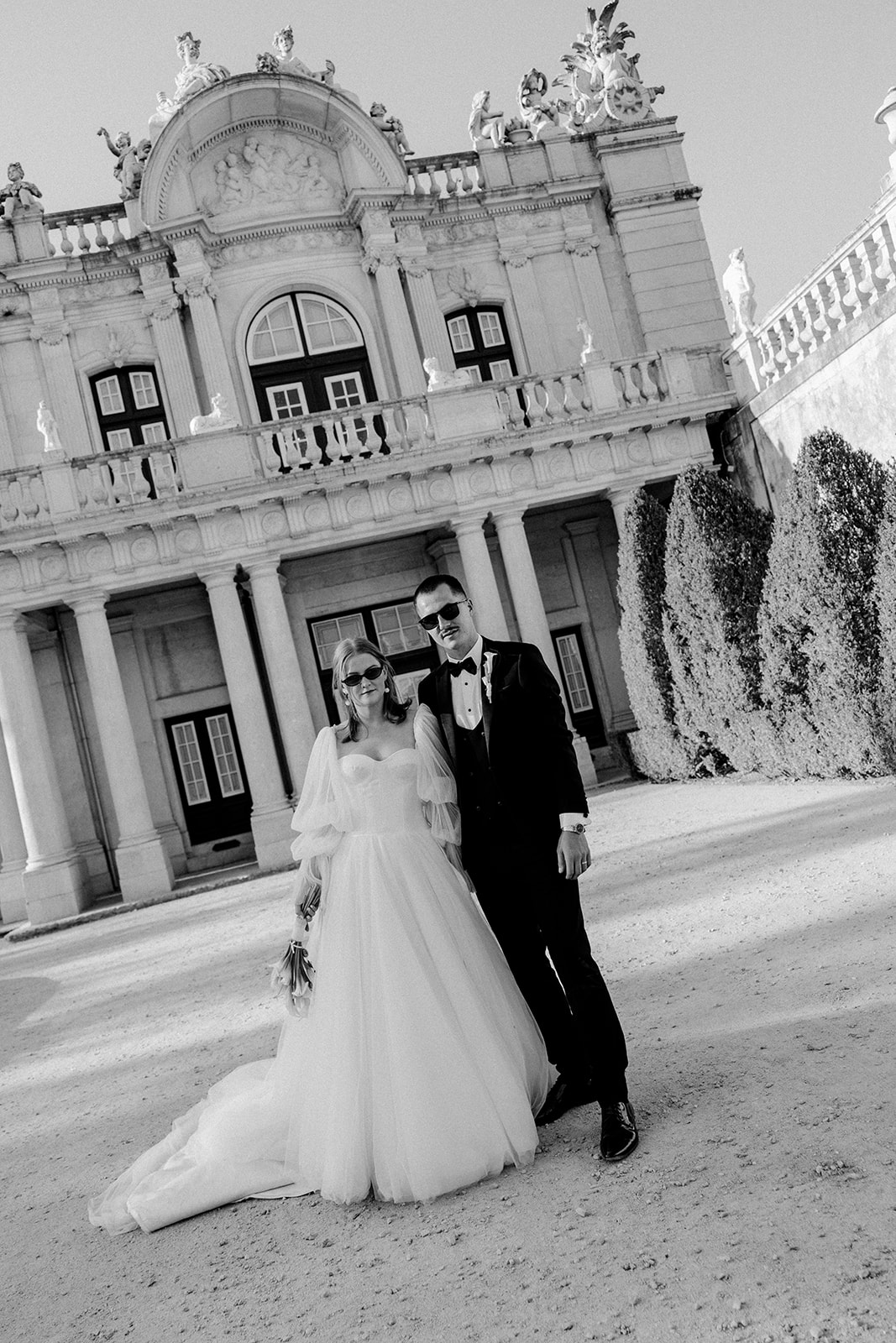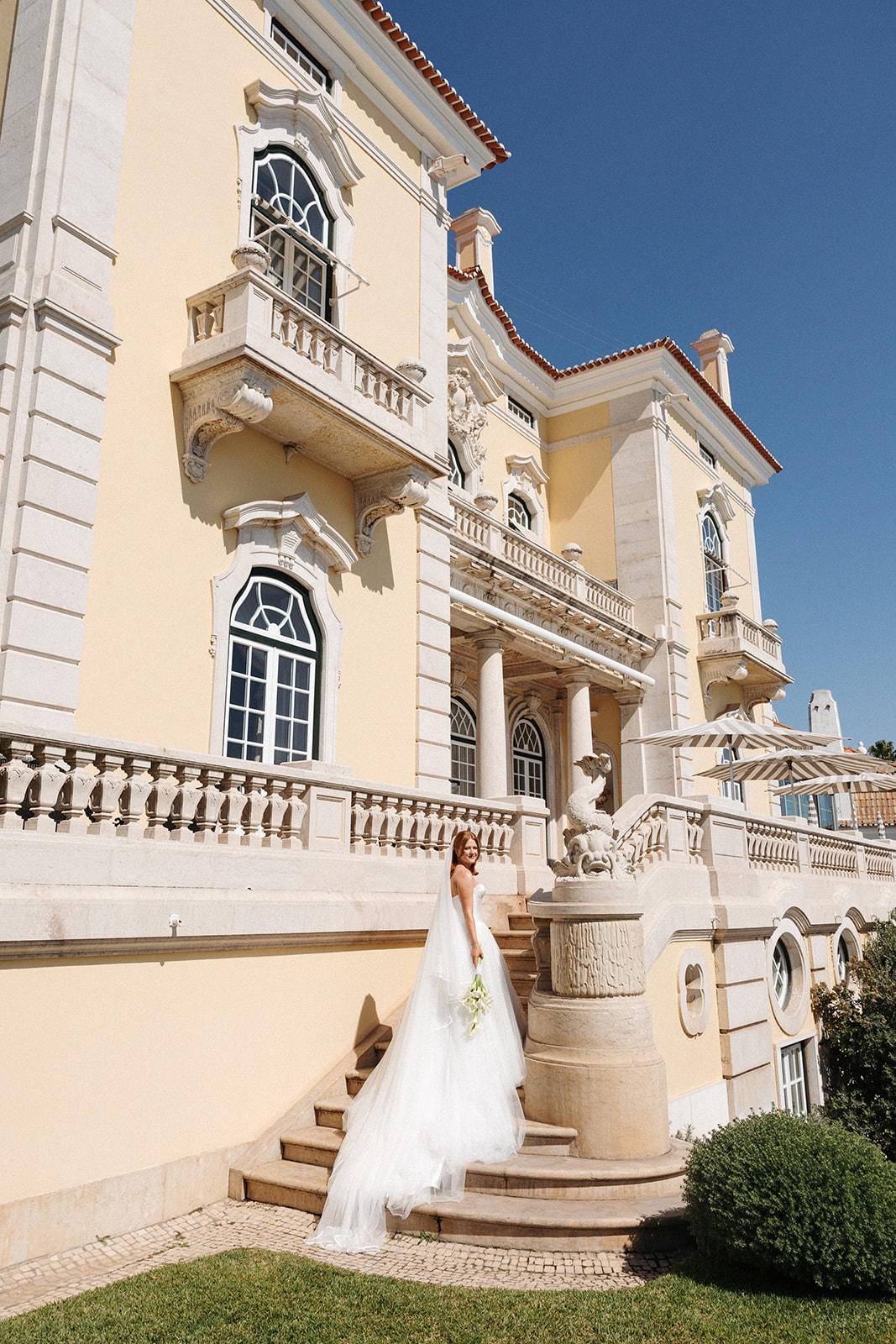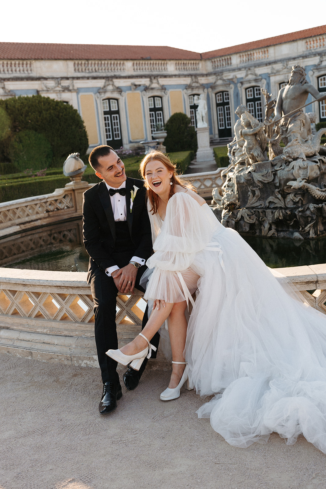 The romance reached its peak as a vintage car whisked them away to the Palácio de Queluz. Against the regal backdrop of the palace, they shared an intimate reading of their vows. Afterward, the royal gardens became the stage for an extensive photoshoot. In her stunning gown, Michaela looked every bit a princess from the palace’s golden era, perfectly embodying the royal heritage of the grounds.
