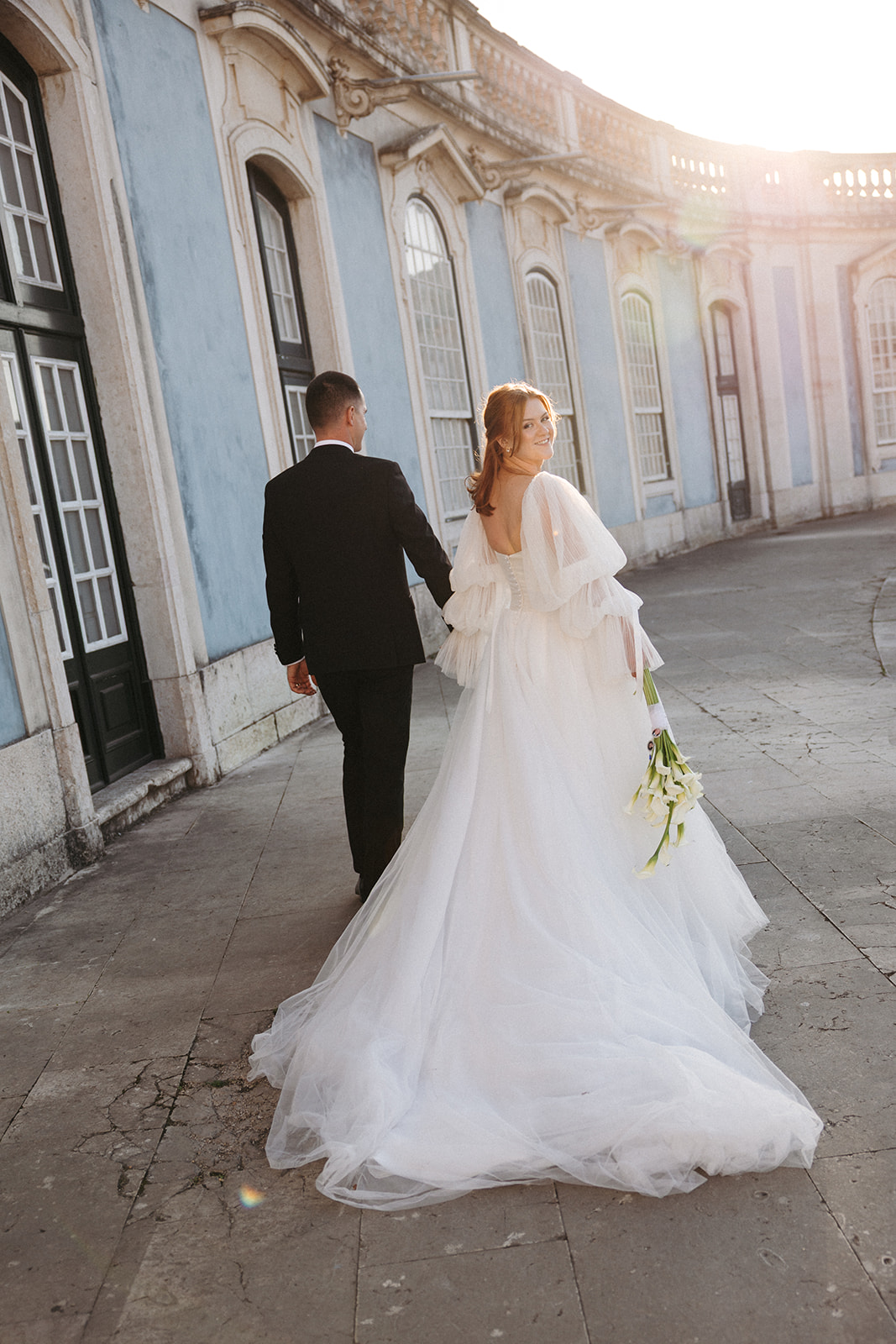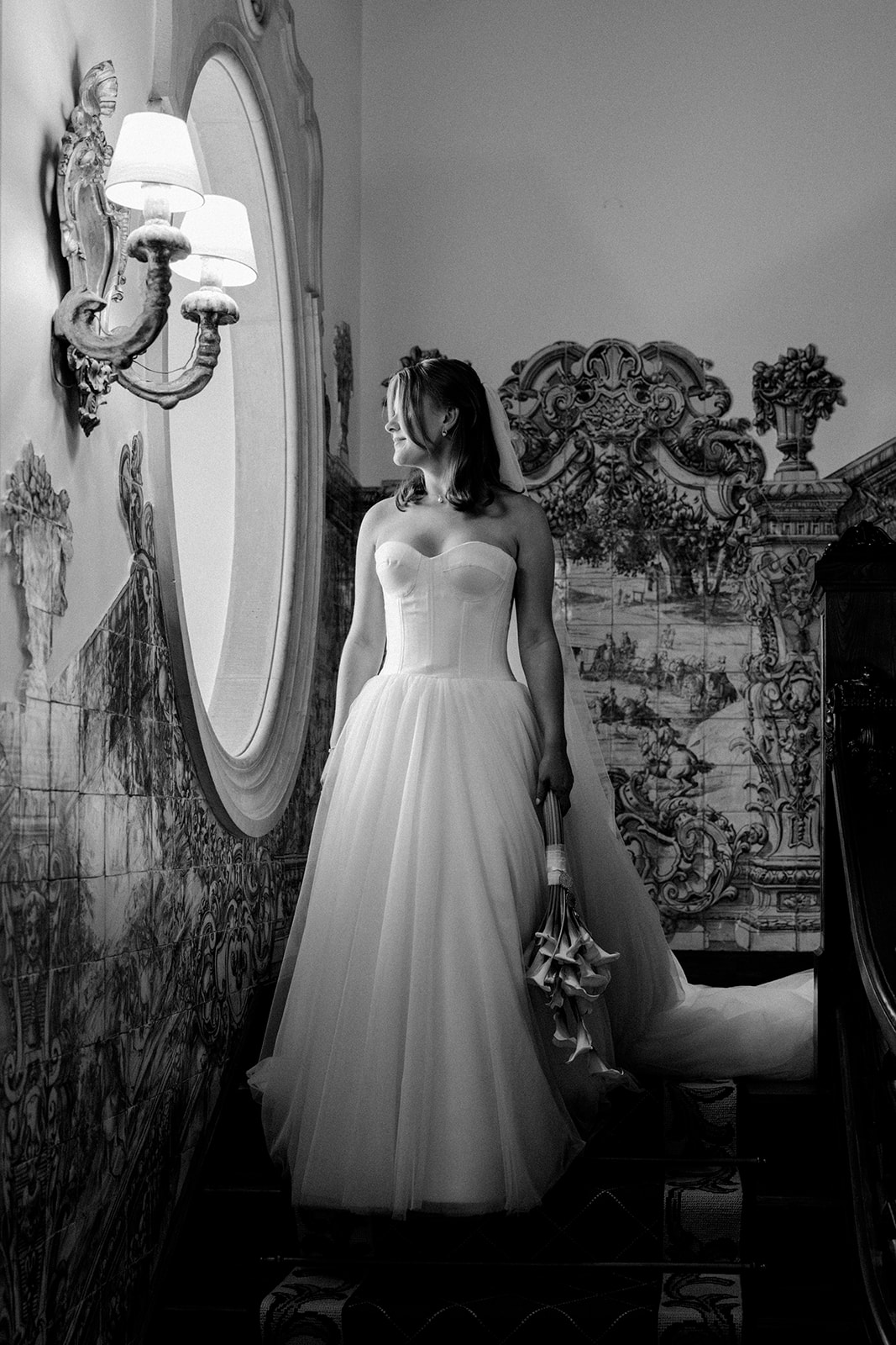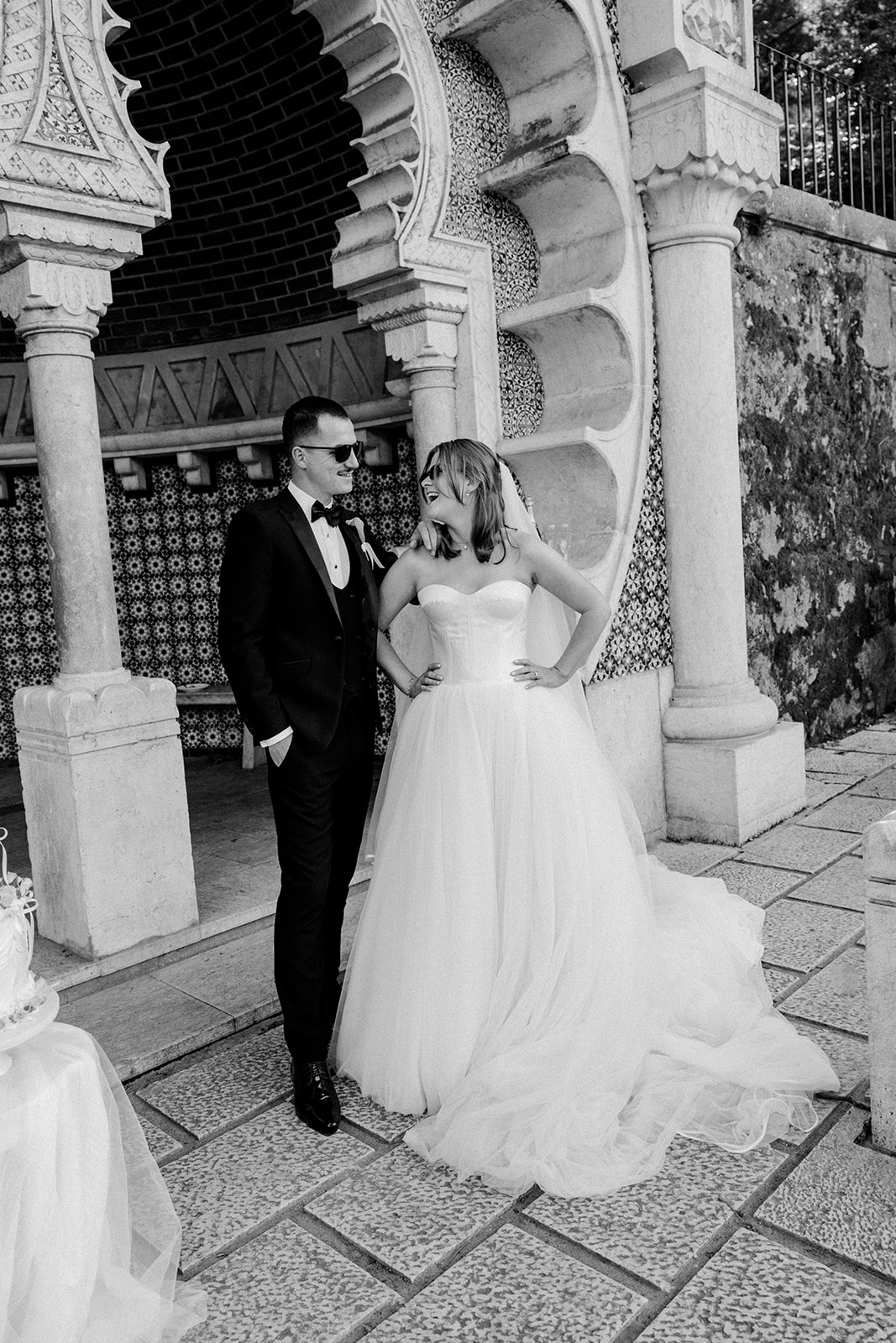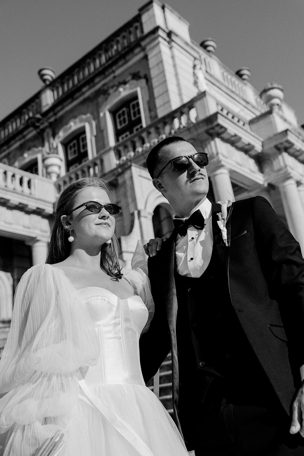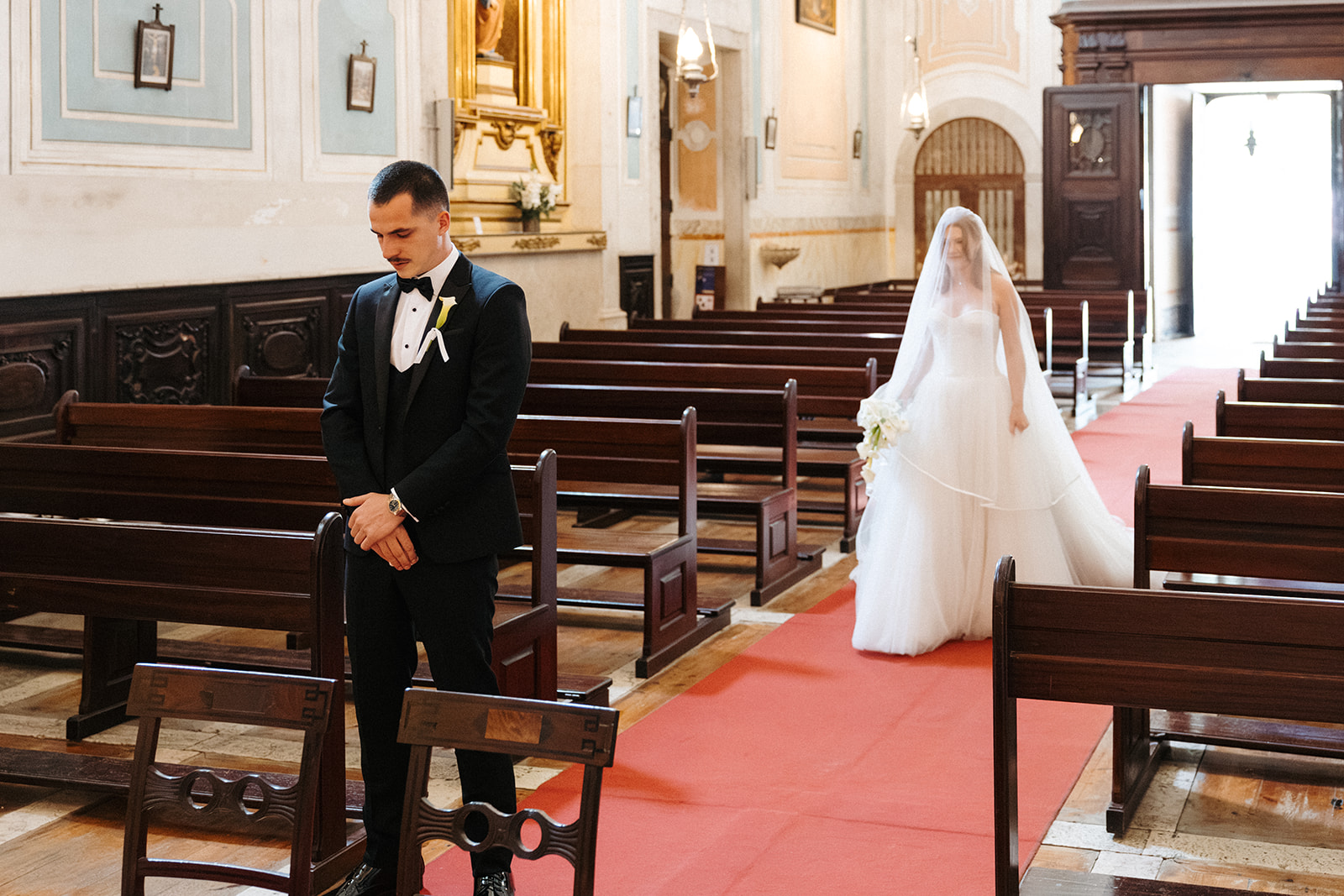 The romance reached its peak as a vintage car whisked them away to the Palácio de Queluz. Against the regal backdrop of the palace, they shared an intimate reading of their vows. Afterward, the royal gardens became the stage for an extensive photoshoot. In her stunning gown, Michaela looked every bit a princess from the palace’s golden era, perfectly embodying the royal heritage of the grounds.