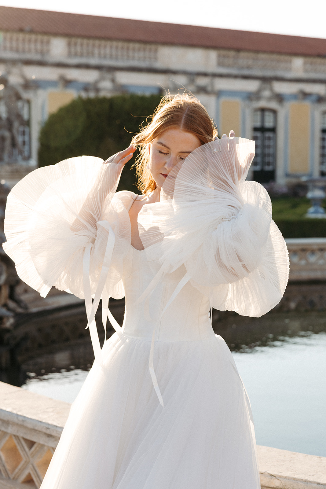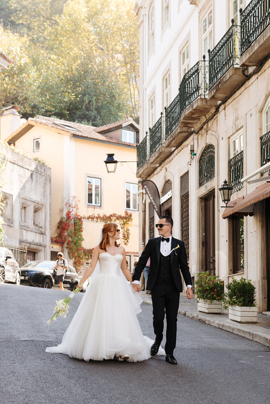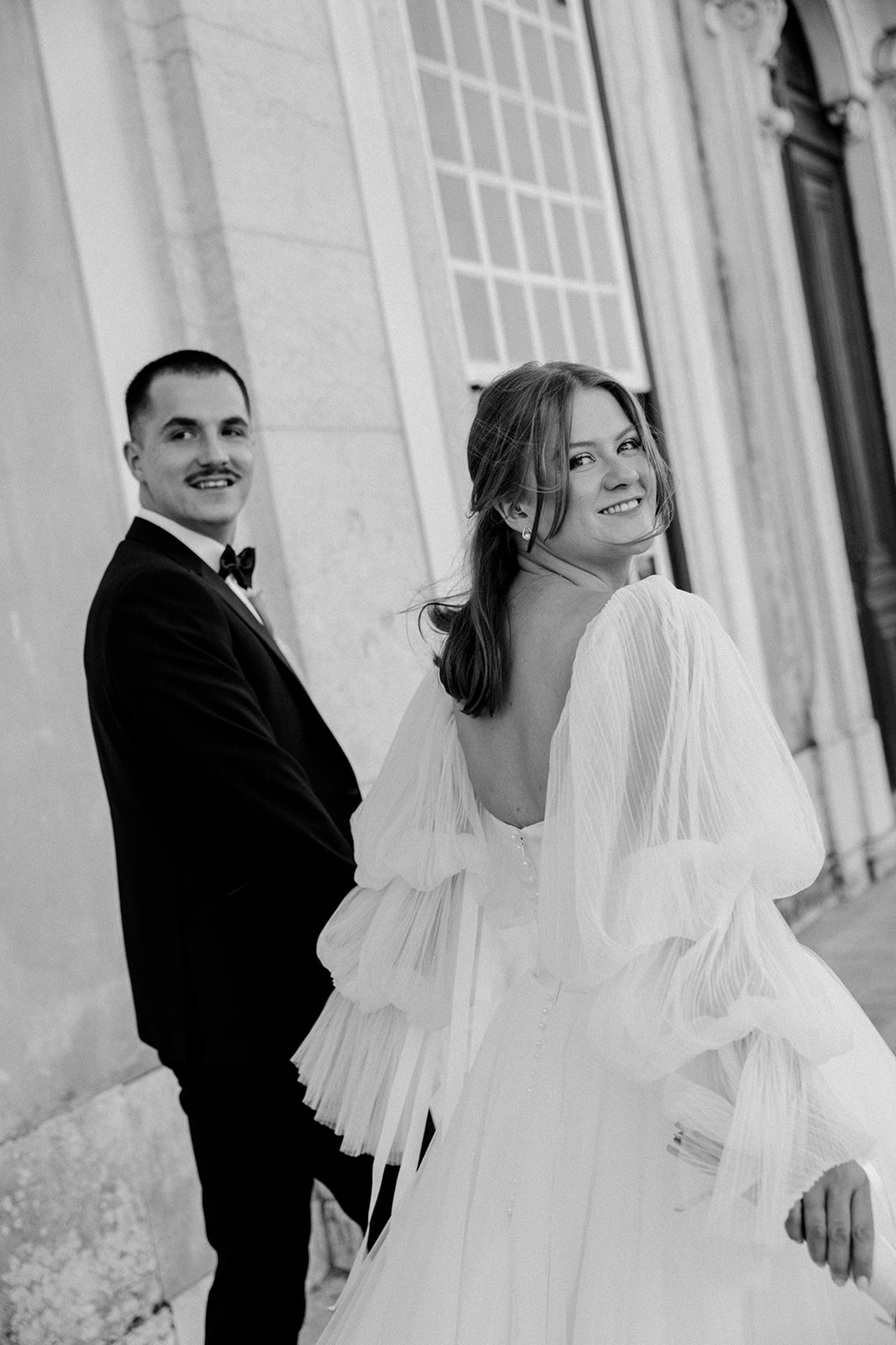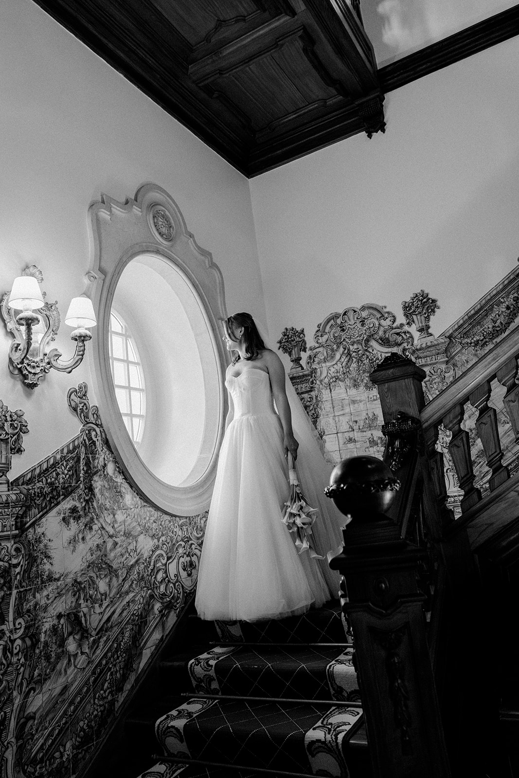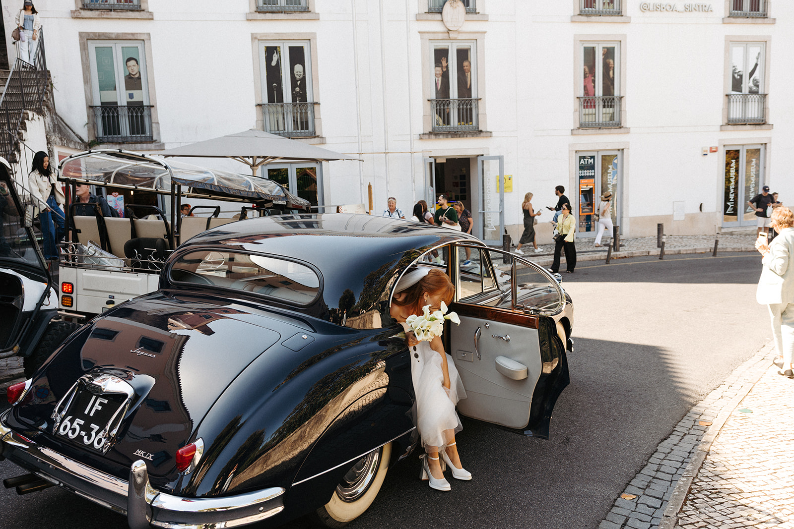 The romance reached its peak as a vintage car whisked them away to the Palácio de Queluz. Against the regal backdrop of the palace, they shared an intimate reading of their vows. Afterward, the royal gardens became the stage for an extensive photoshoot. In her stunning gown, Michaela looked every bit a princess from the palace’s golden era, perfectly embodying the royal heritage of the grounds.