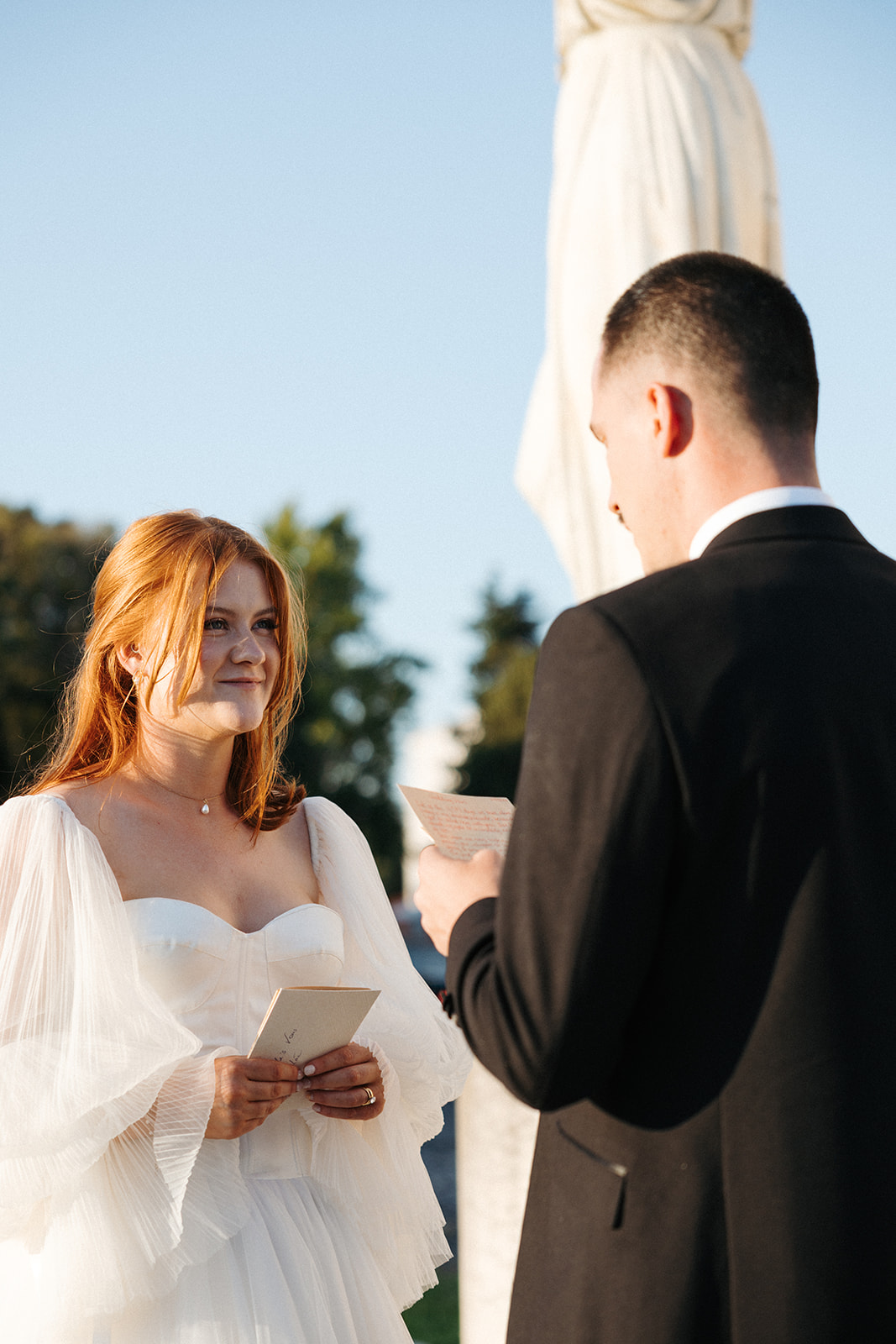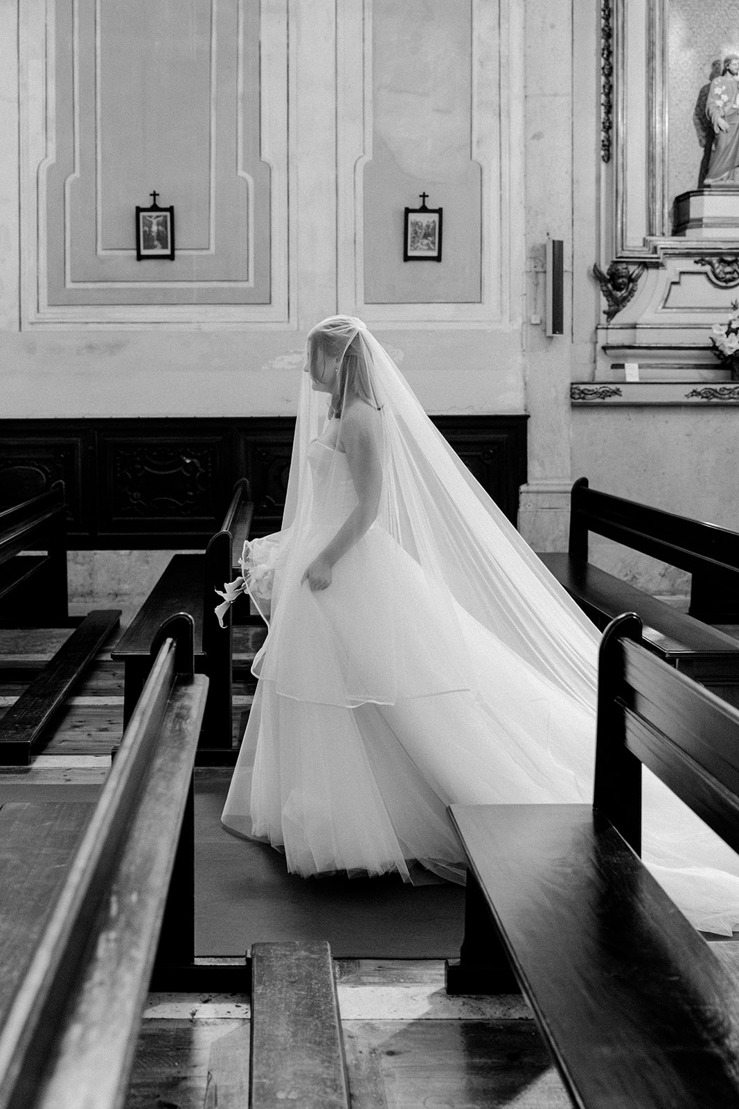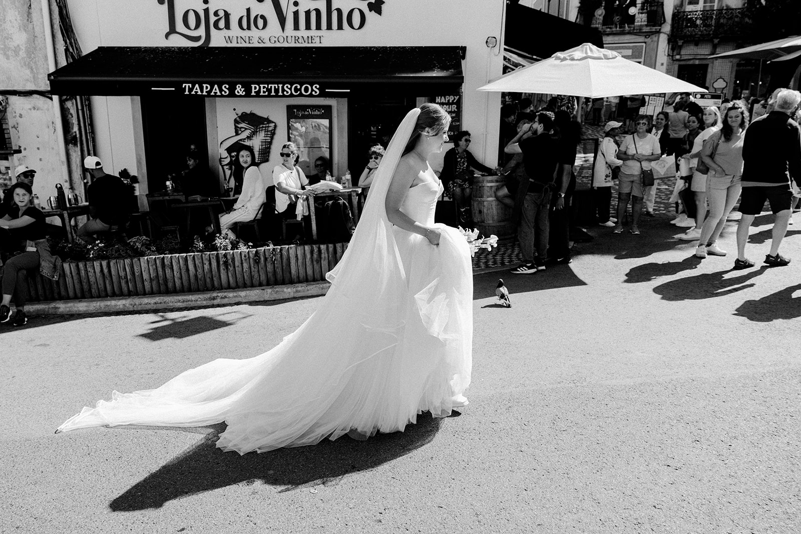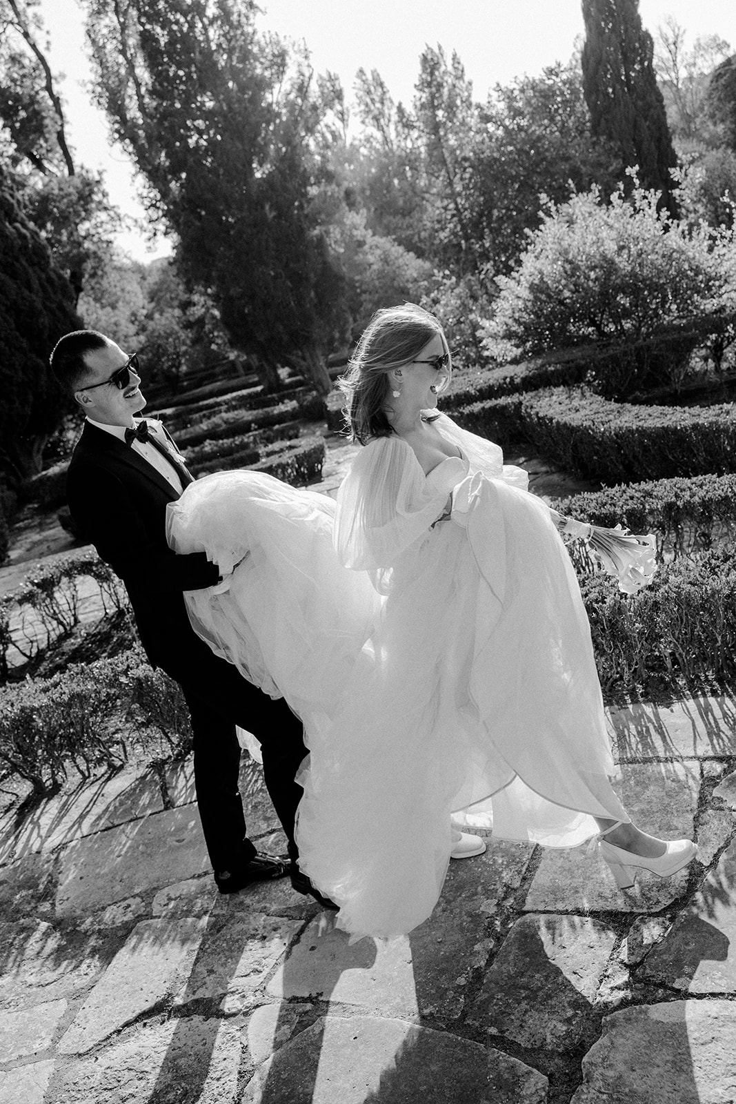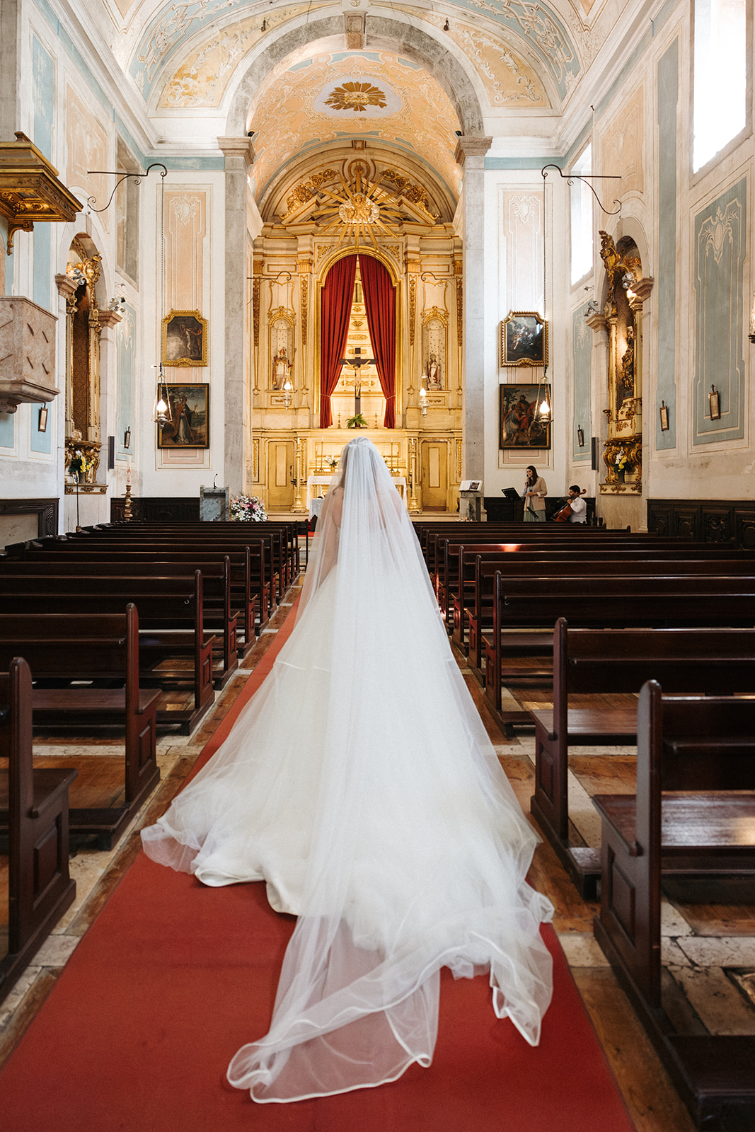 The romance reached its peak as a vintage car whisked them away to the Palácio de Queluz. Against the regal backdrop of the palace, they shared an intimate reading of their vows. Afterward, the royal gardens became the stage for an extensive photoshoot. In her stunning gown, Michaela looked every bit a princess from the palace’s golden era, perfectly embodying the royal heritage of the grounds.